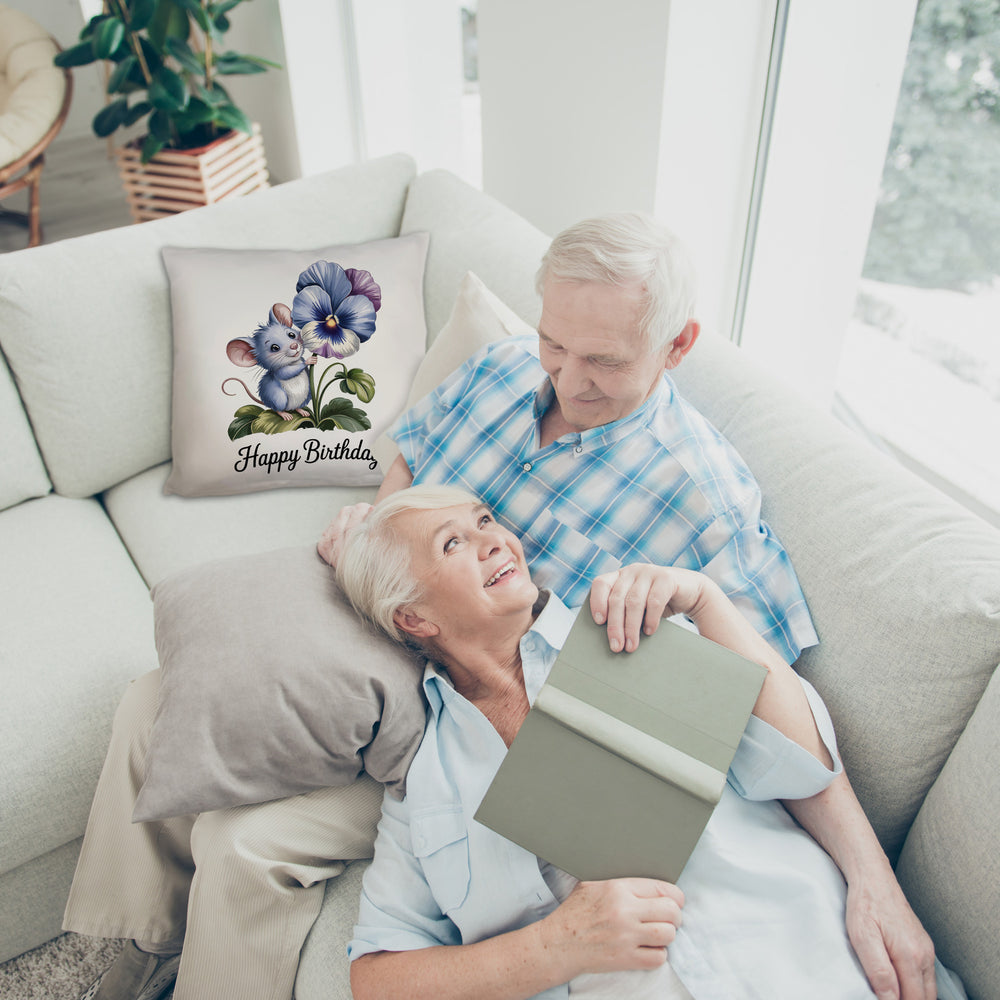 Maus mit Stiefmütterchen Kissen HAPPY BIRTHDAY - Standard ist auf Lager und wird versandt, sobald es wieder verfügbar ist