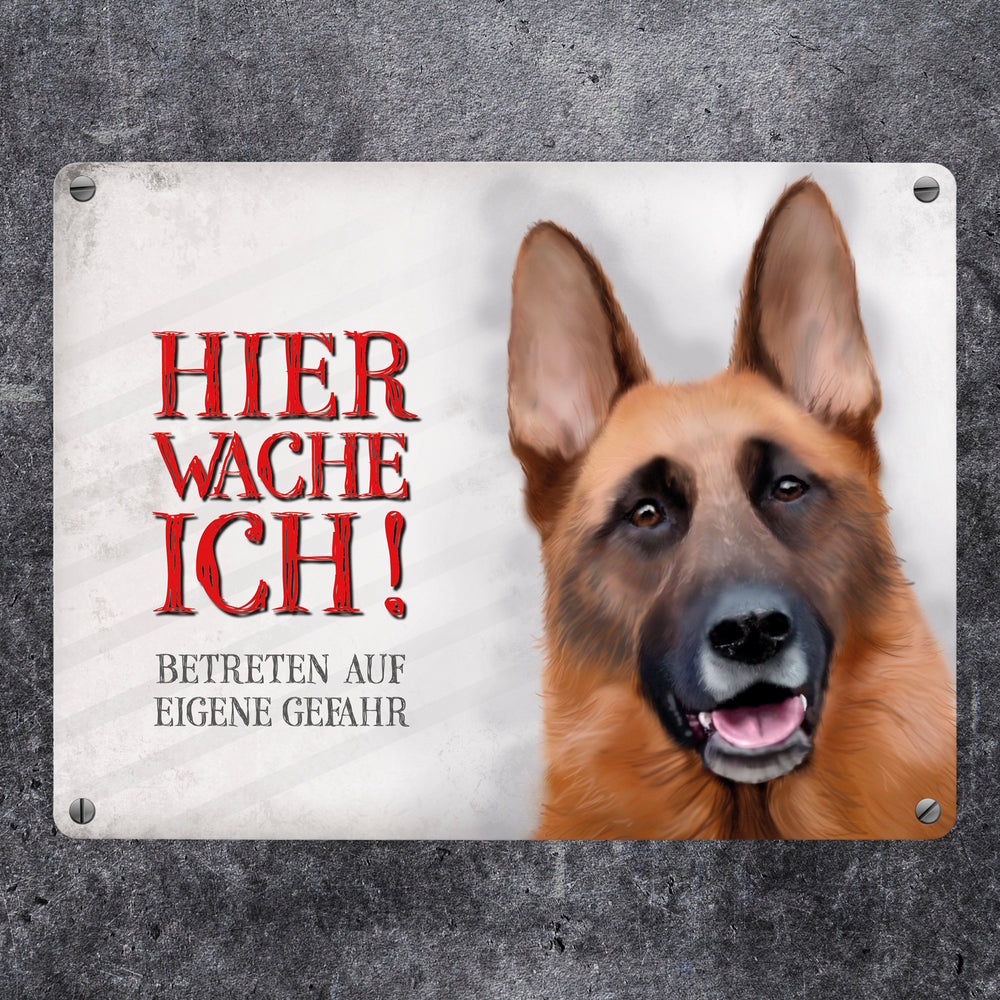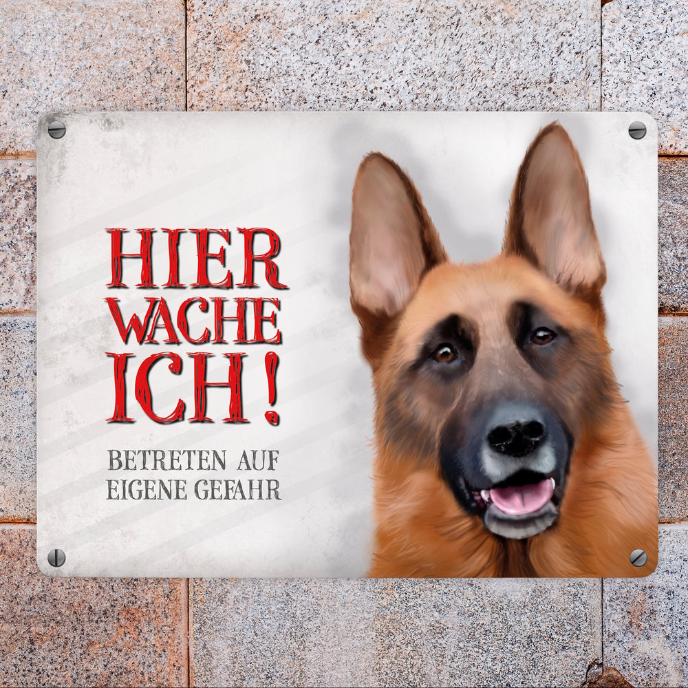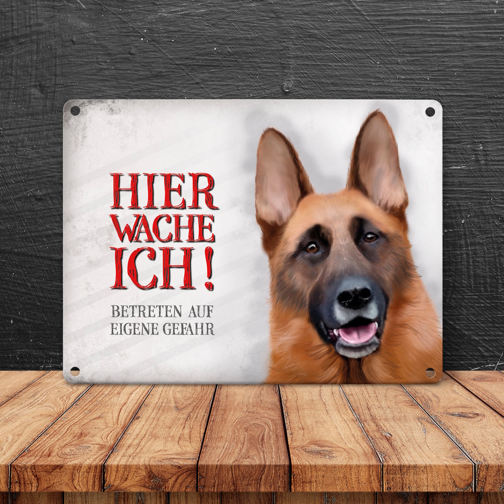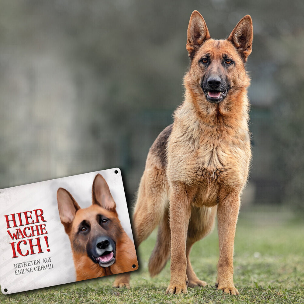 - 1x Metallschild mit Schäferhund Motiv und Spruch: Betreten auf eigene Gefahr ... in der gewählten Größe