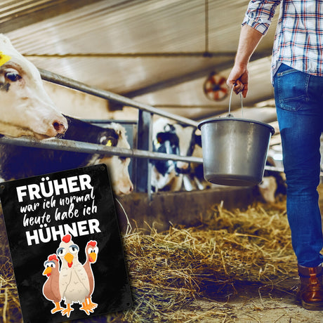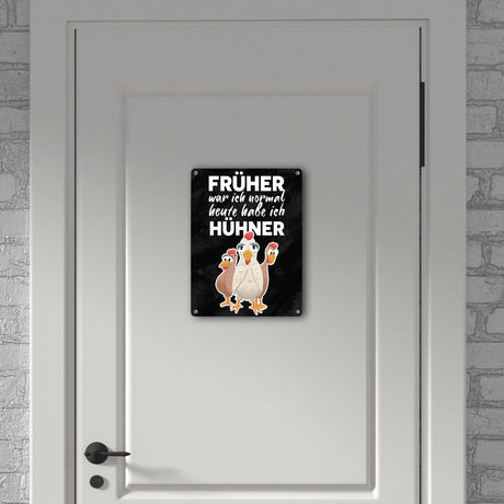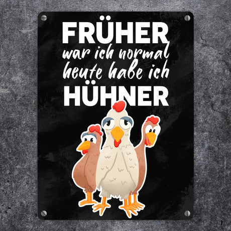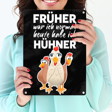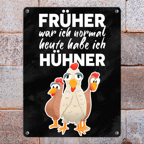Früher war ich normal heute habe ich Hühner Metallschild für Hühnerhalter