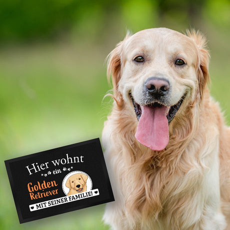 Ab €16,95Grundpreis /Nicht verfügbarAuf LagerHier wohnt ein Golden Retriever mit seiner Familie Fußmatte