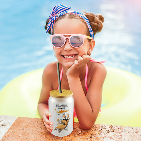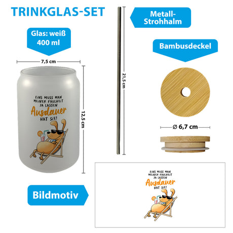 €16,95Grundpreis /Nicht verfügbar Fauler Hund Trinkglas mit Bambusdeckel mit Spruch Meine Faulheit hat Ausdauer