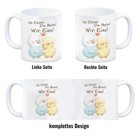 Ab €12,95Grundpreis /Nicht verfügbarAuf LagerVogelpaar Kaffeebecher mit Spruch Ich Deins Du Meins Wir Eins