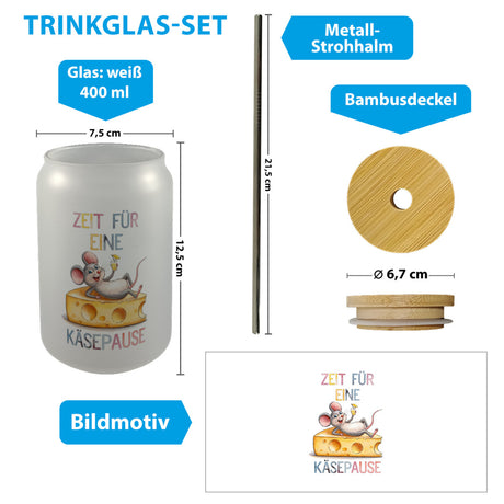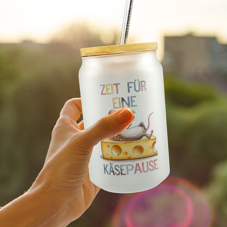Ab €6,95Grundpreis /Nicht verfügbarAuf LagerFröhliche Maus auf Käse Trinkglas mit Bambusdeckel Käsepause