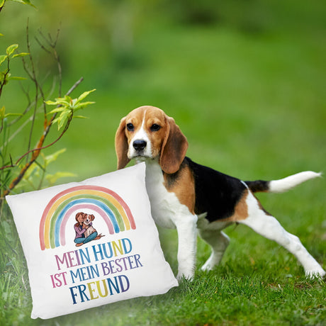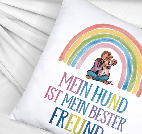 €8,95Grundpreis /Nicht verfügbarAuf LagerHund ist bester Freund Kissen Frau umarmt Hund unter Regenbogen