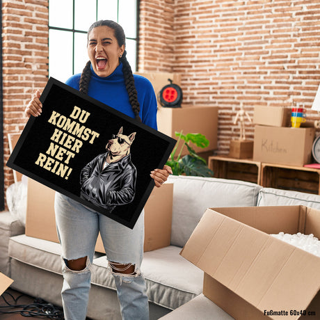 Ab €12,95Grundpreis /Nicht verfügbarAuf LagerTürsteher Hund in Lederjacke Fußmatte in 35x50 cm - Du kommst hier net rein