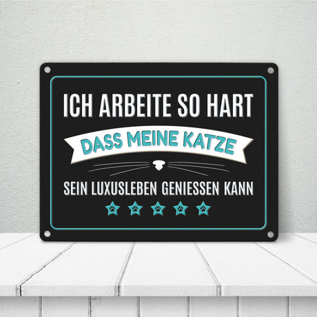Ab €8,95Grundpreis /Nicht verfügbarAuf LagerLuxusleben Katze Metallschild mit Barthaar Motiv - Haustier Luxus Arbeit Kater Katze Büro