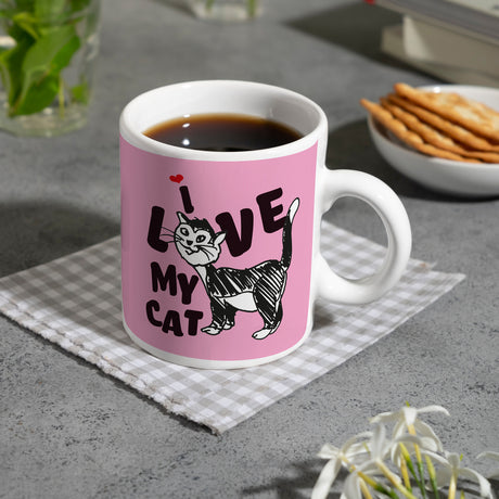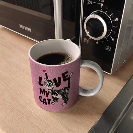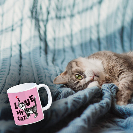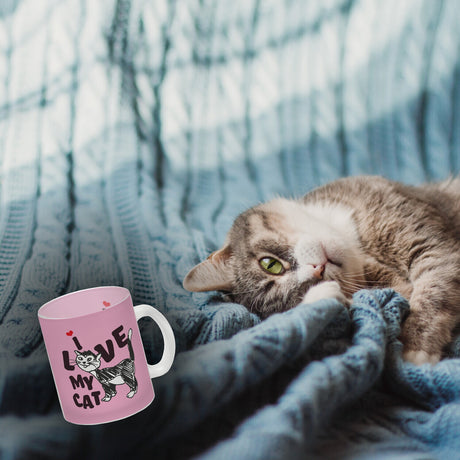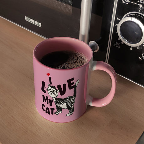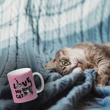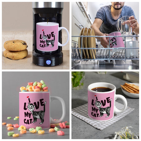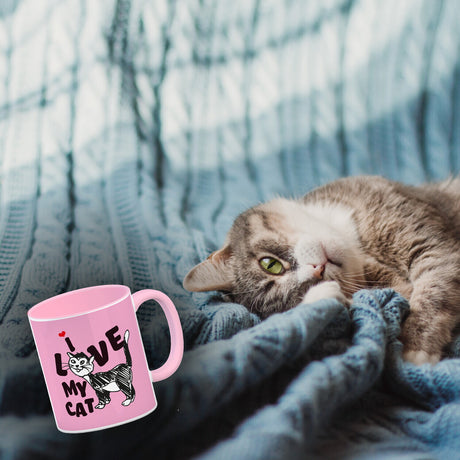 Ab €16,95Grundpreis /Nicht verfügbarAuf LagerIch liebe meine Katze Kaffeebecher mit Katzen Motiv und Rosa Hintergrund