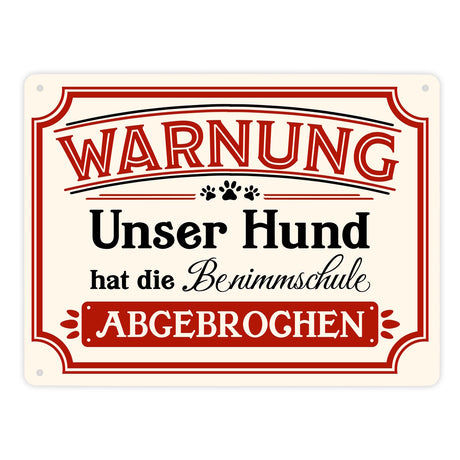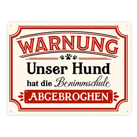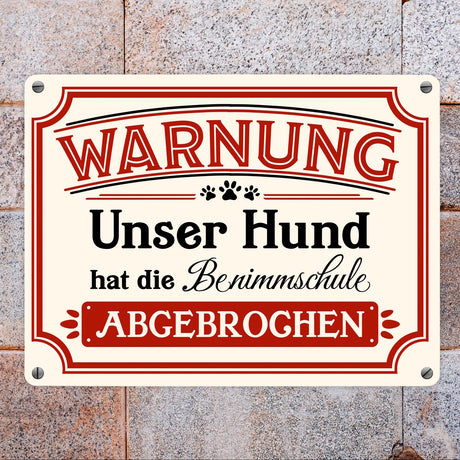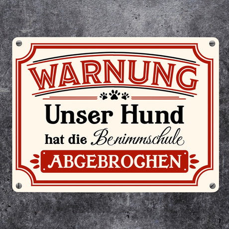 Ab €4,95Grundpreis /Nicht verfügbarAuf LagerWarnung - Unser Hund hat die Benimmschule abgebrochen Metallschild