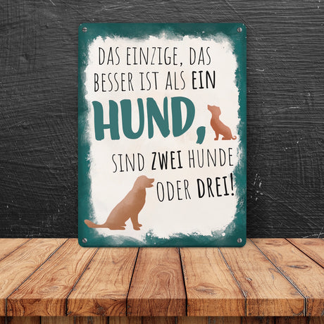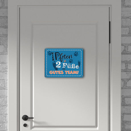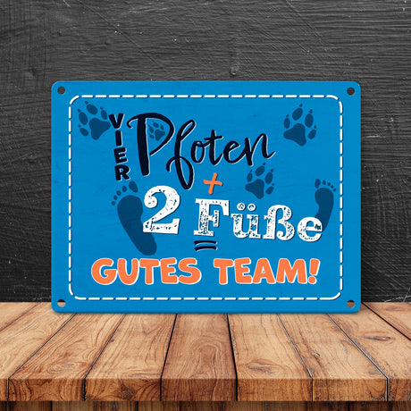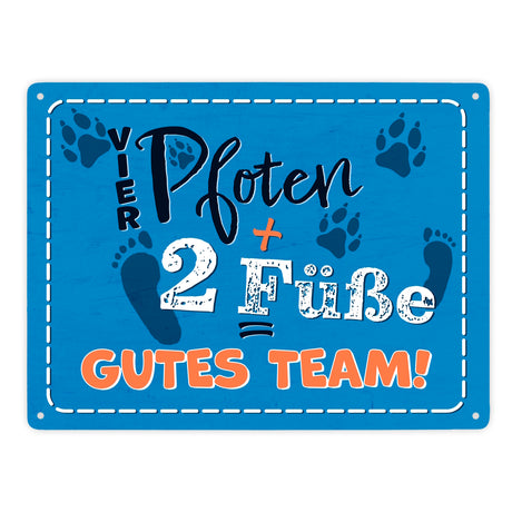 Vier Pfoten + Zwei Füße = Gutes Team Hunde Metallschild