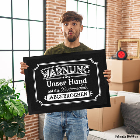 Ab €12,95Grundpreis /Nicht verfügbarAuf LagerWarnung - Unser Hund hat die Benimmschule abgebrochen Fußmatte