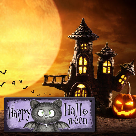 Ab €12,95Grundpreis /Nicht verfügbarAuf LagerHappy Halloween Metallschild mit schwarzer Fledermaus-Katze