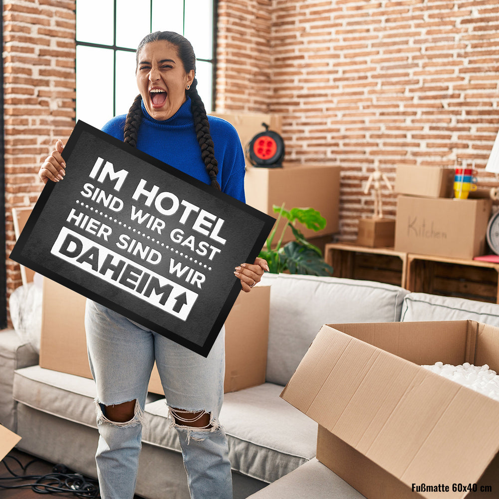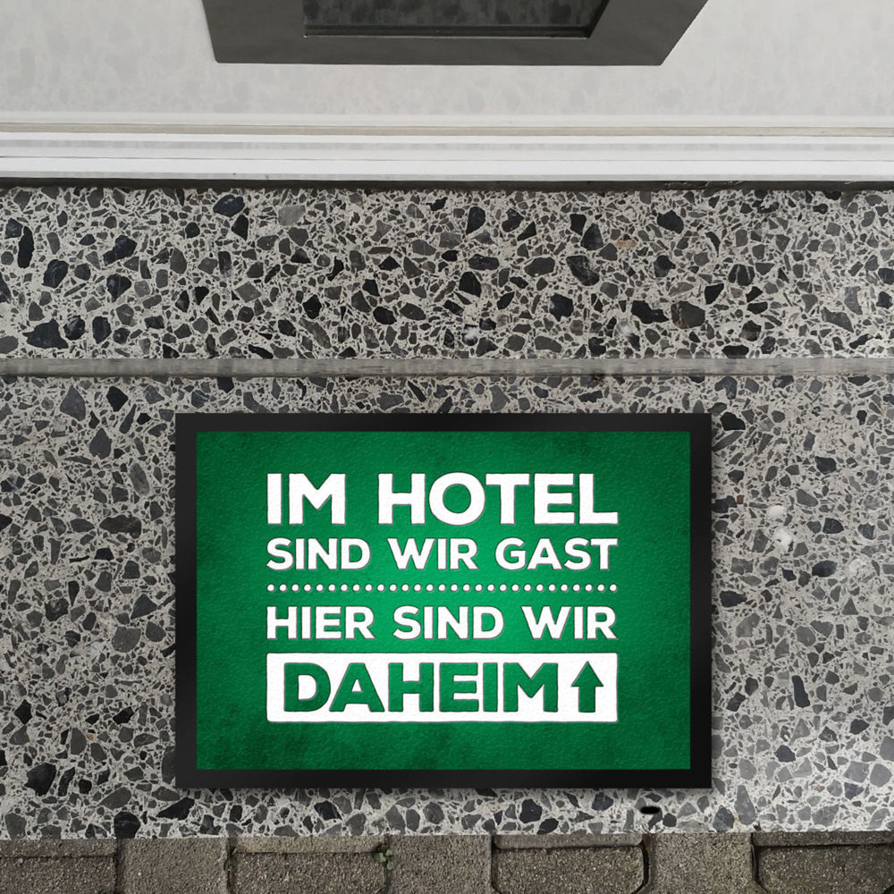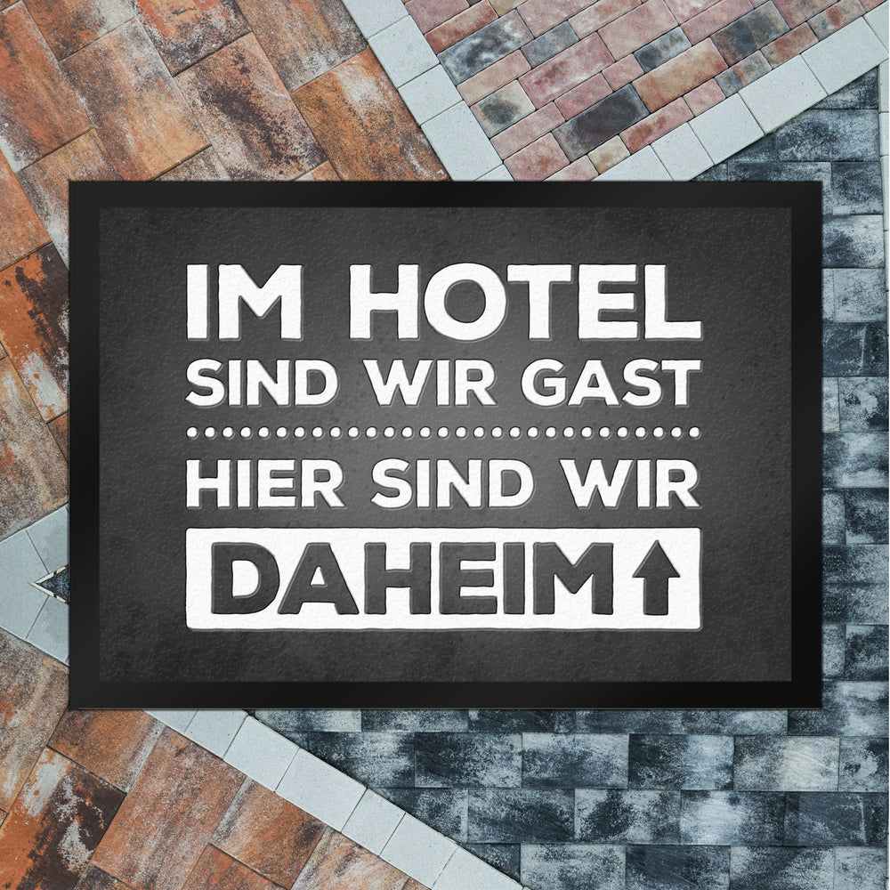 Hier sind wir daheim Fußmatte Zuhause Wohnungstüre Haustüre Home Hotel