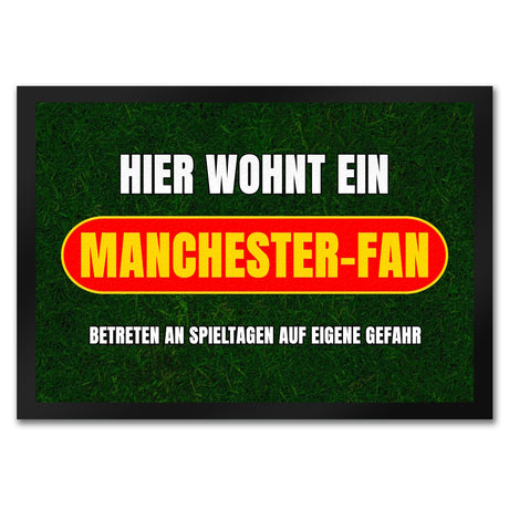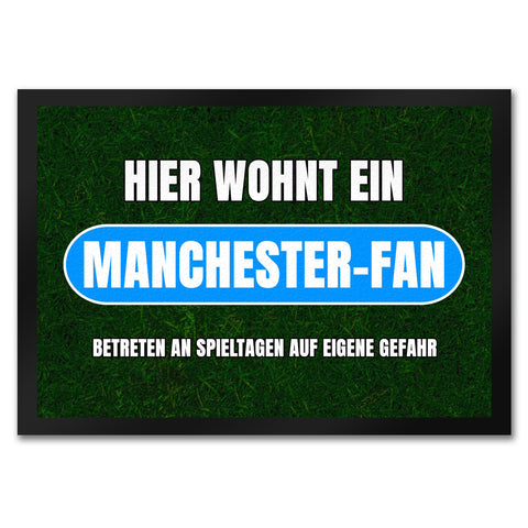 Hier wohnt ein Manchester-Fan Fußmatte in 35x50 cm mit Rasenmotiv