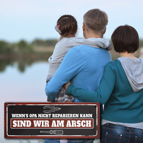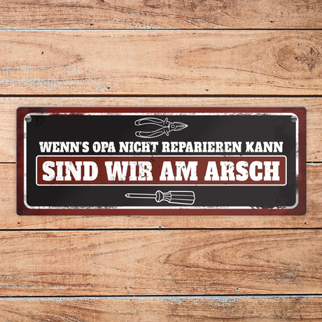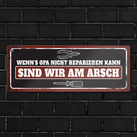 - Metallschild mit Werkzeug Motiv und Spruch: Wenn's Opa nicht reparieren kann Ab €6,95Grundpreis /Nicht verfügbarAuf Lager