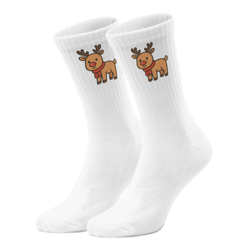 - Die epicsocks Weihnachtsträume Rentier Socken sind ein Paar weiße Tennissocken, die mit einem entzückenden Rentier mit roter Nase und Schal ausgestattet sind. Diese charmanten Grafiken sorgen für weihnachtliche Stimmung und verleihen jedem Outfit einen verspielten Touch.