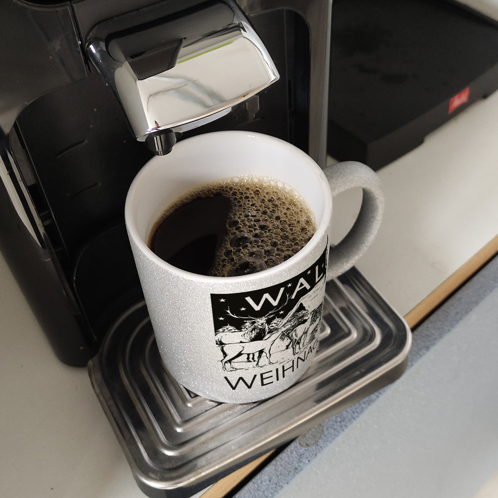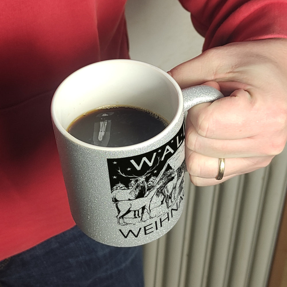 Unser Kaffeebecher zum Thema Weihnachten im Wald ist ein wunderschönes Geschenk für alle, die sich eine kleine Erinnerung an die schönsten Momente schenken möchten. Erhältlich in verschiedenen Varianten, von weißer Standardtasse bis hin zu edler Glastasse oder exklusiver Silberedition mit Glitzereffekt. Mit liebevoll aufgedrucktem Motiv auf beiden Seiten des Bechers und dem Spruch Wald Weihnacht kann man jeden Tag an den Zauber der Festtage erinnern. Unsere Kaffeebecher werden mit Sorgfalt in Handarbeit hergestellt, so dass Sie lange Freude an Ihrem Geschenk haben werden. Holen Sie sich jetzt den nostalgischen Charme des Weihnachtswaldes nach Hause und verschenken Sie ein Stück Weihnachtsmagie!