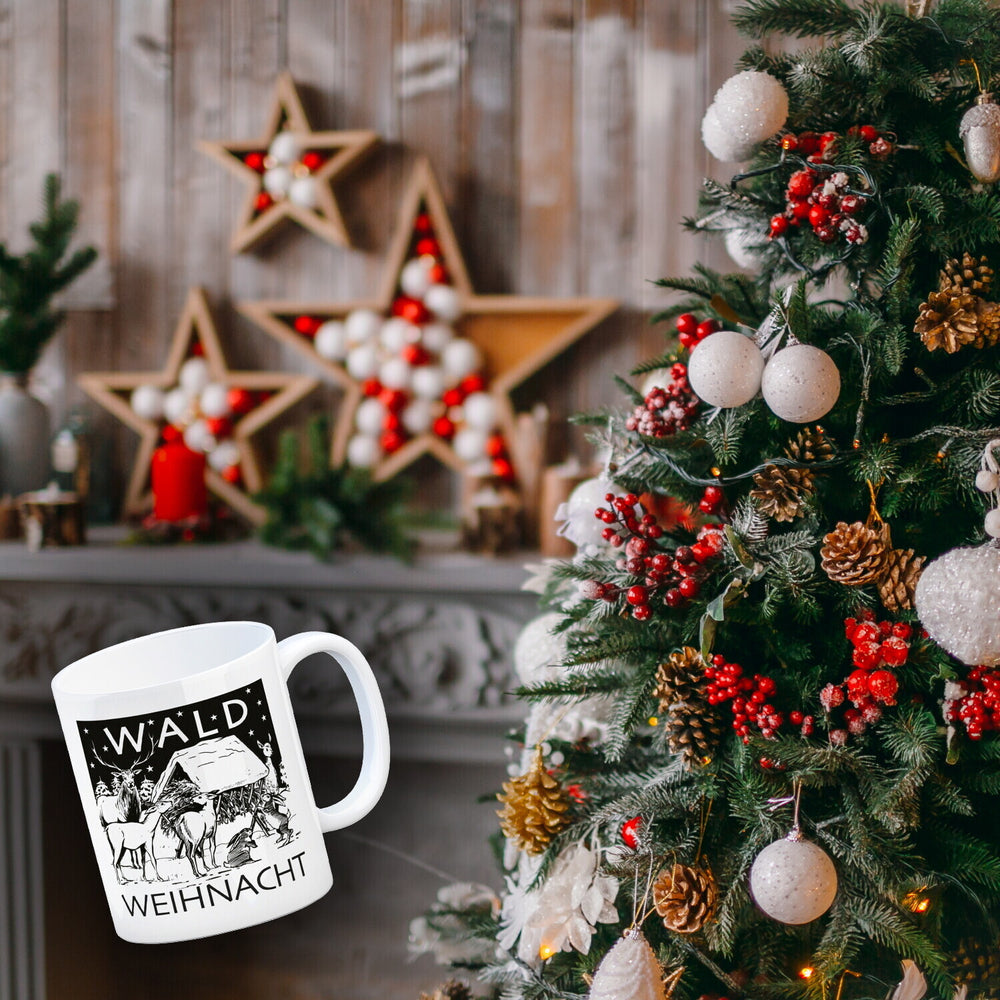 • Kaffeebecher zum Thema Weihnachten im Wald eignen sich perfekt als Geschenk zu Weihnachten.