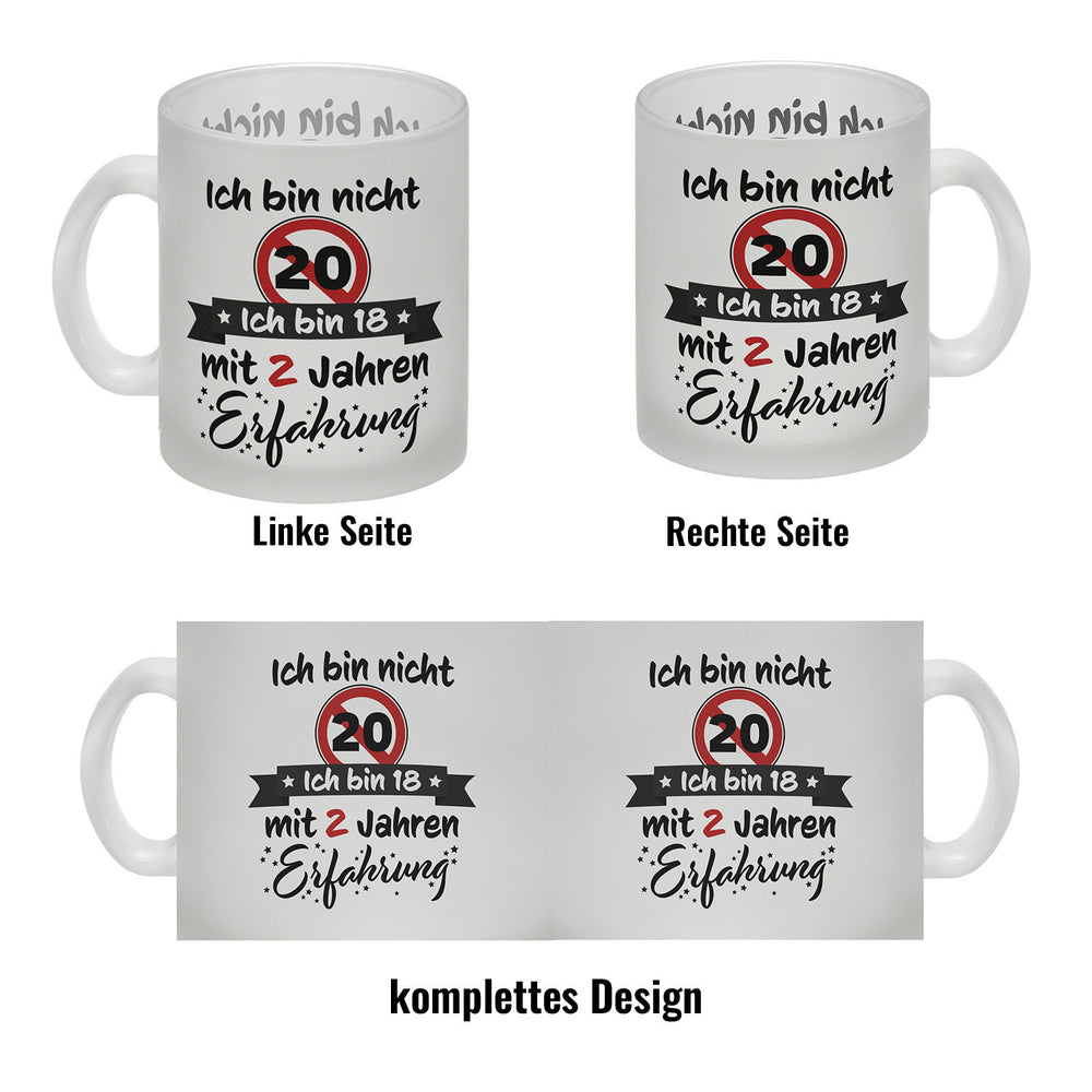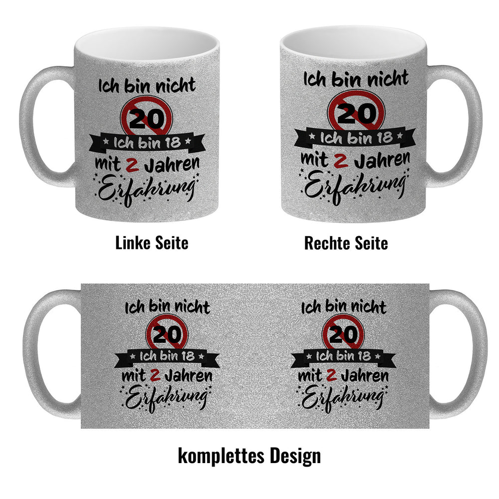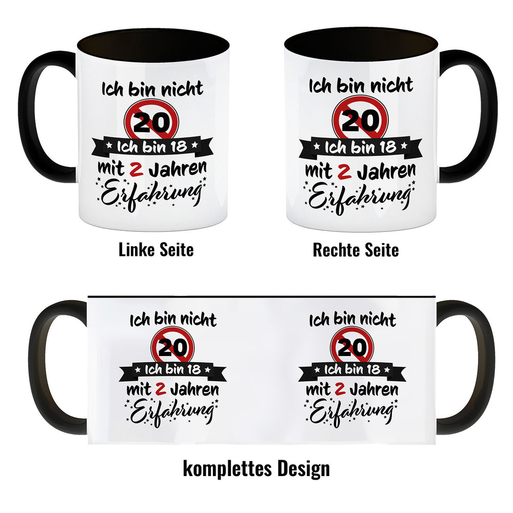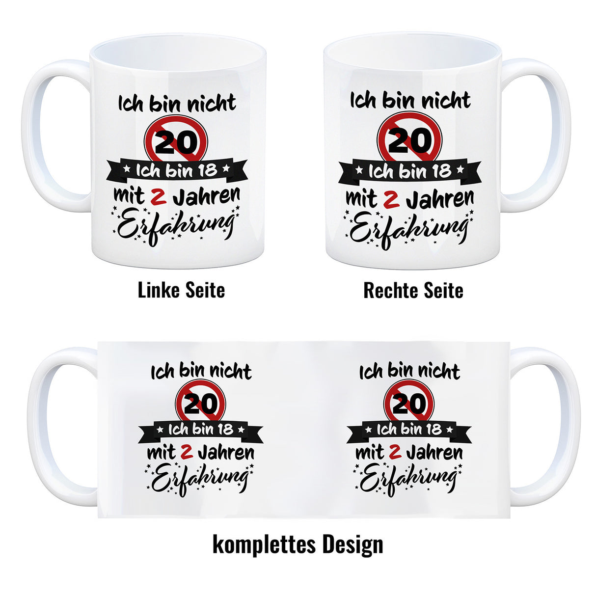 • 1x 20. Geburtstag Kaffeebecher mit lustigem Spruch: 18 mit Erfahrung in der gewählten Ausführung