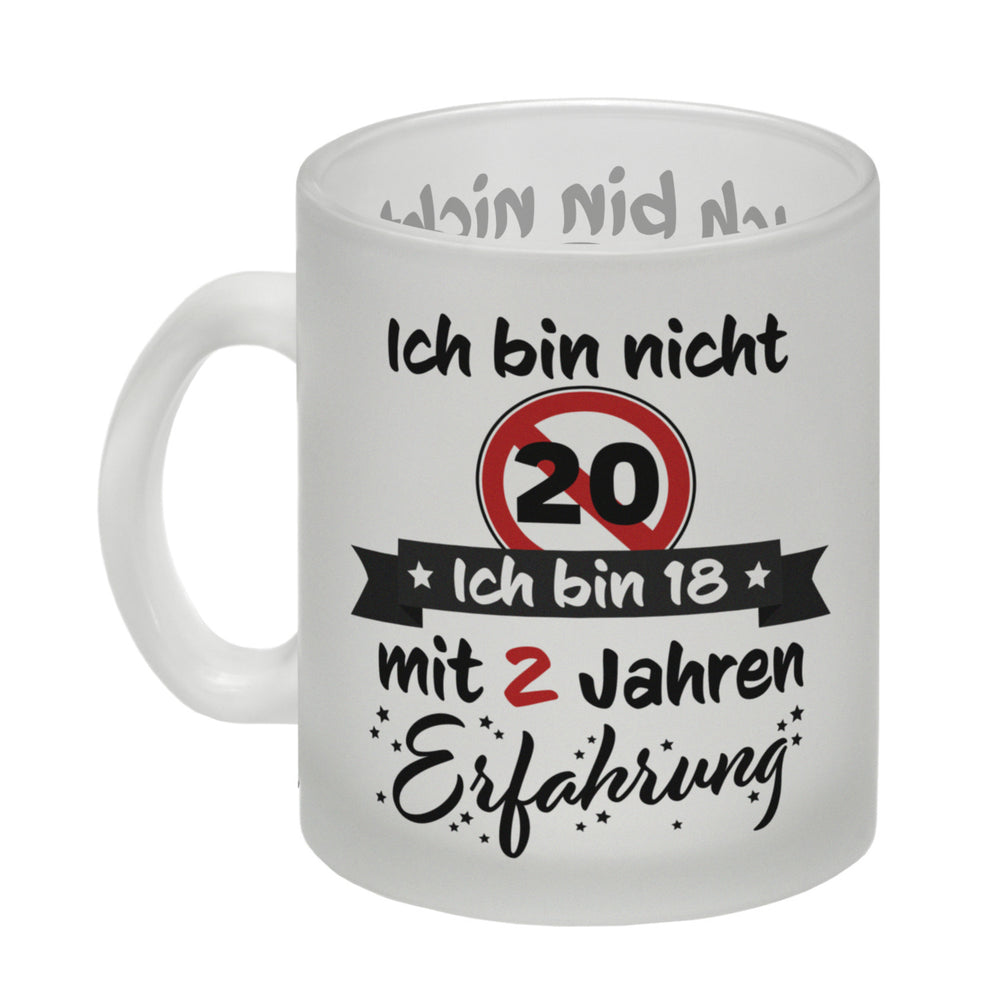 20. Geburtstag Kaffeebecher mit lustigem Spruch: 18 mit Erfahrung