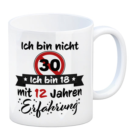 30. Geburtstag Kaffeebecher mit lustigem Spruch: 18 mit Erfahrung