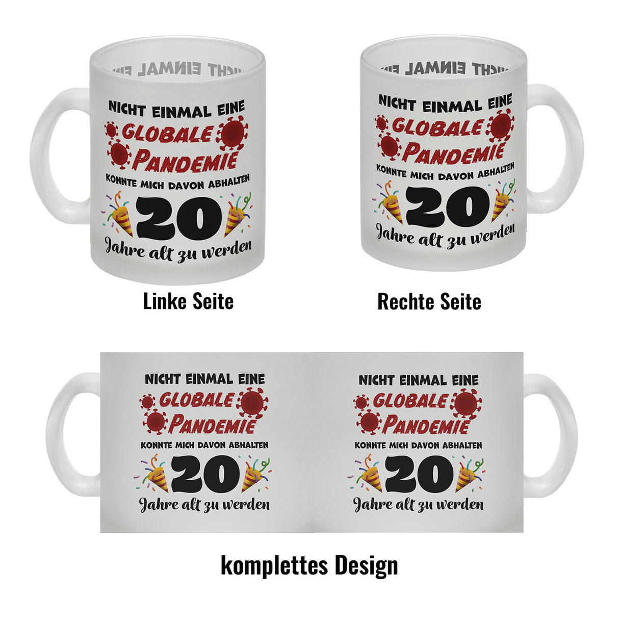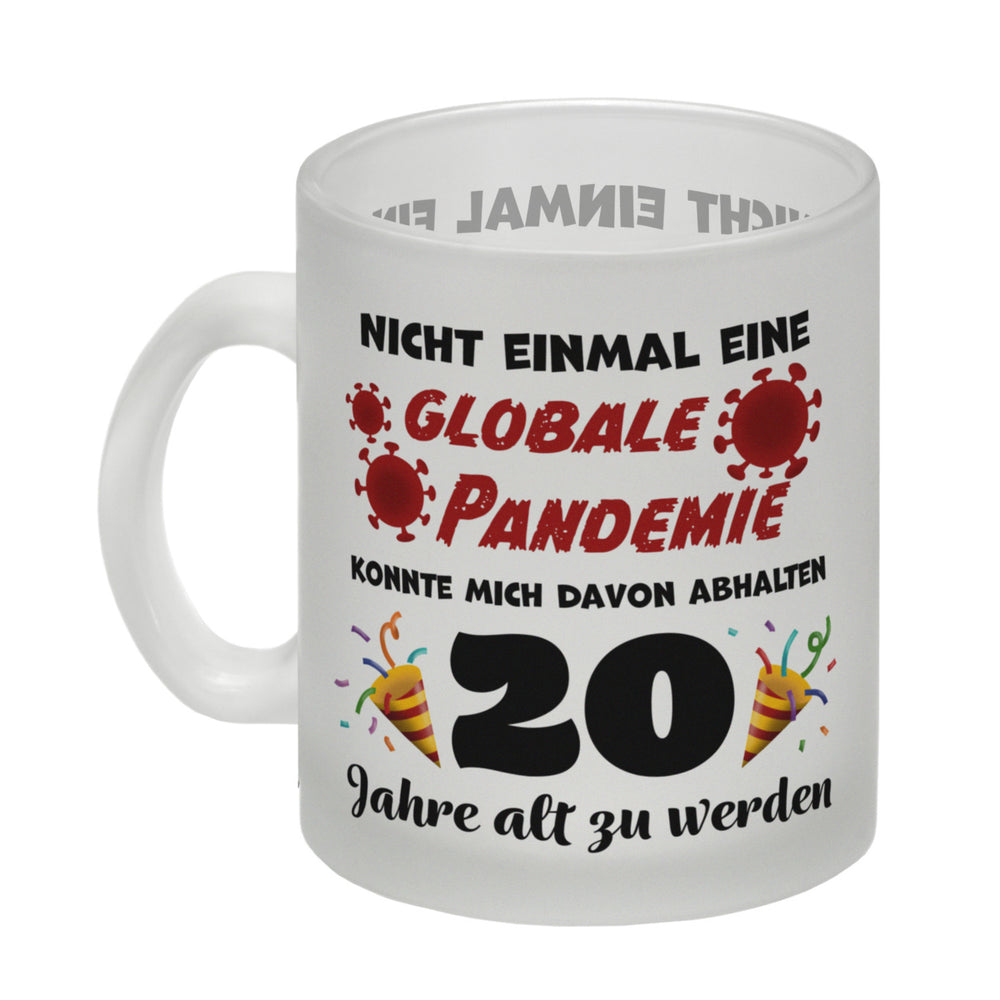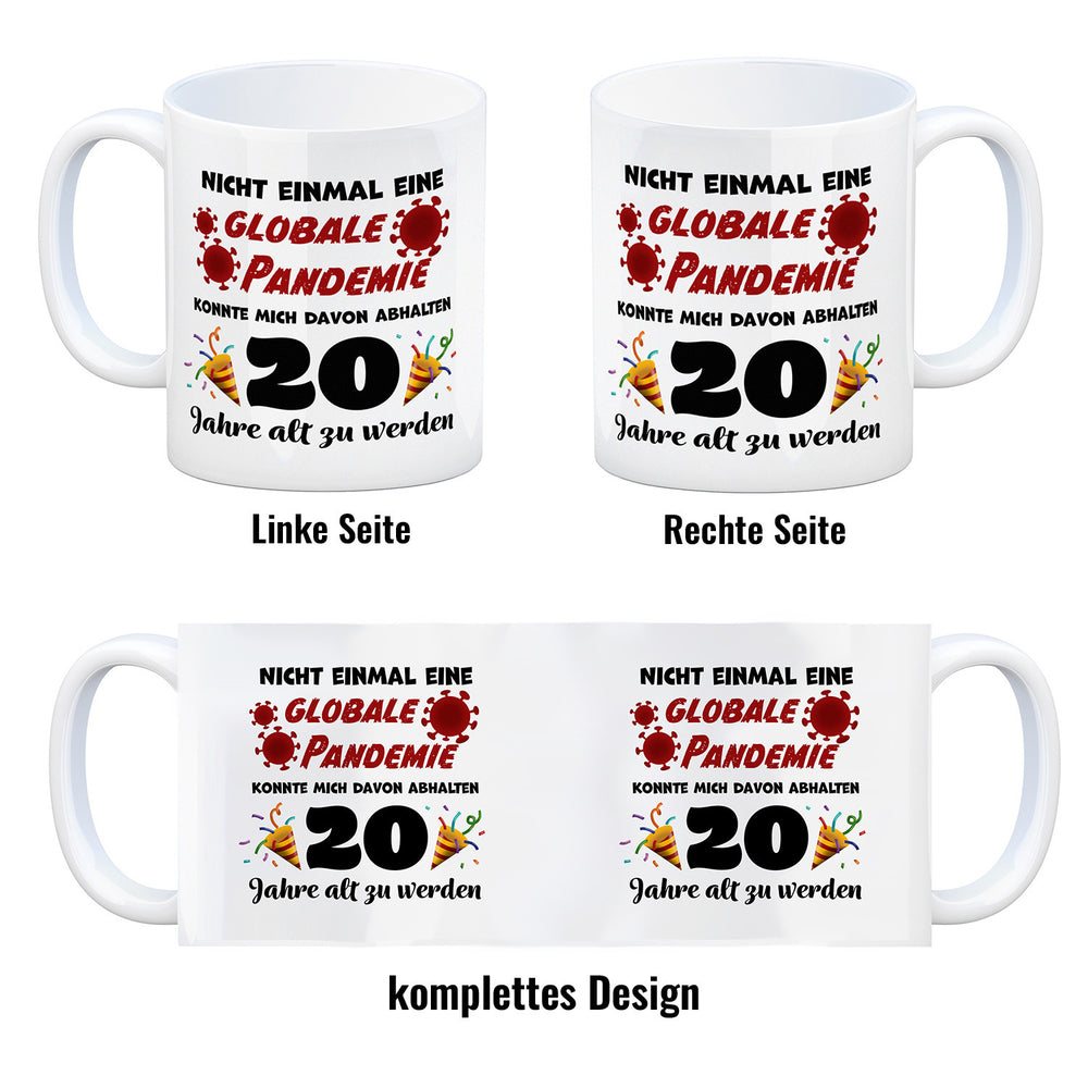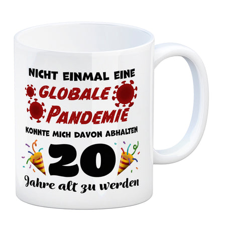 - 1x 20. Geburtstag Kaffeebecher mit lustigem Spruch: Pandemie in der gewählten Ausführung