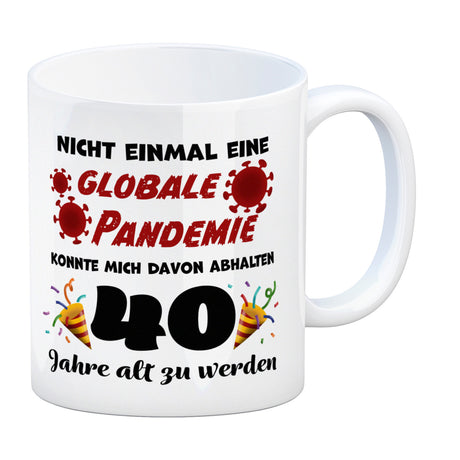 40. Geburtstag Kaffeebecher mit lustigem Spruch: Pandemie