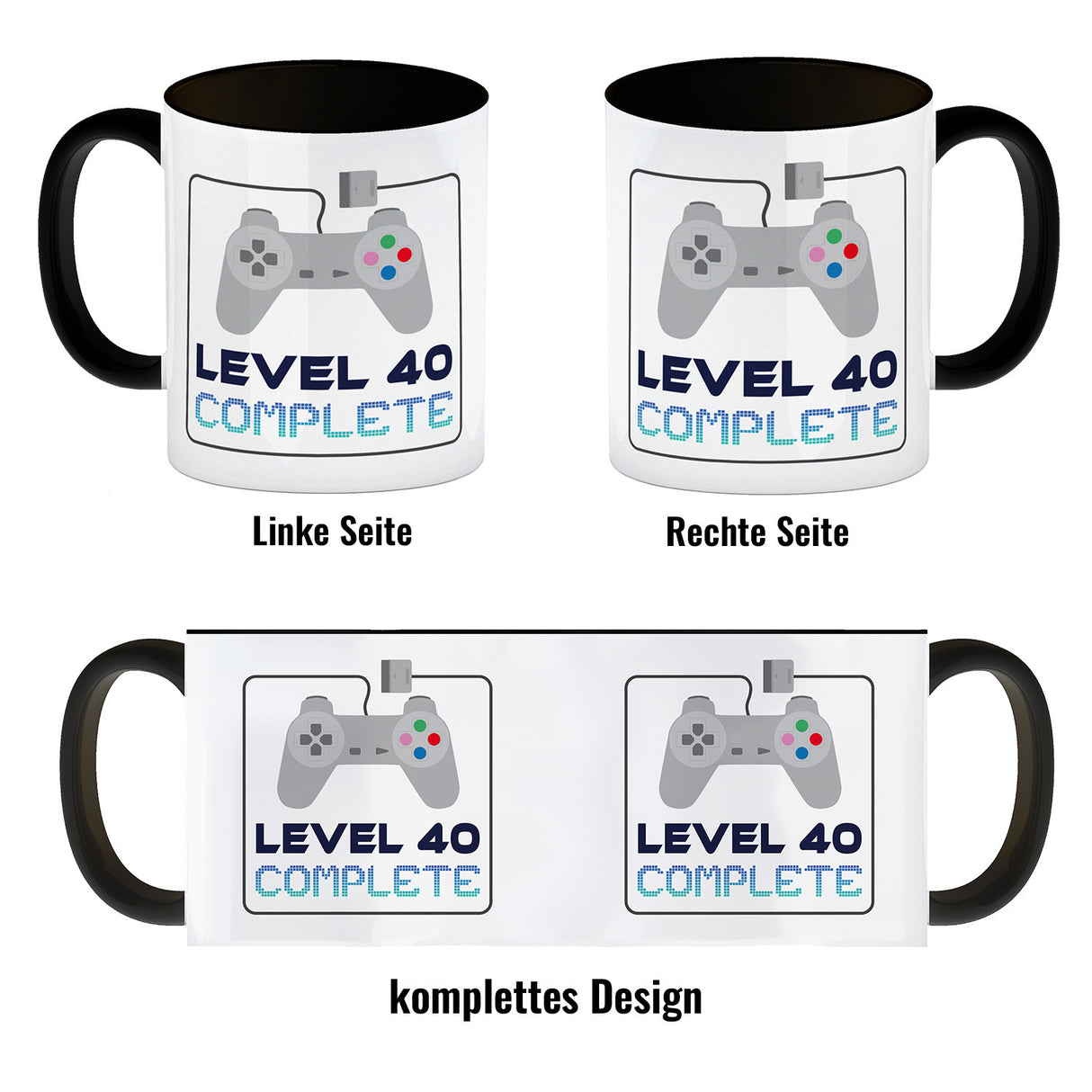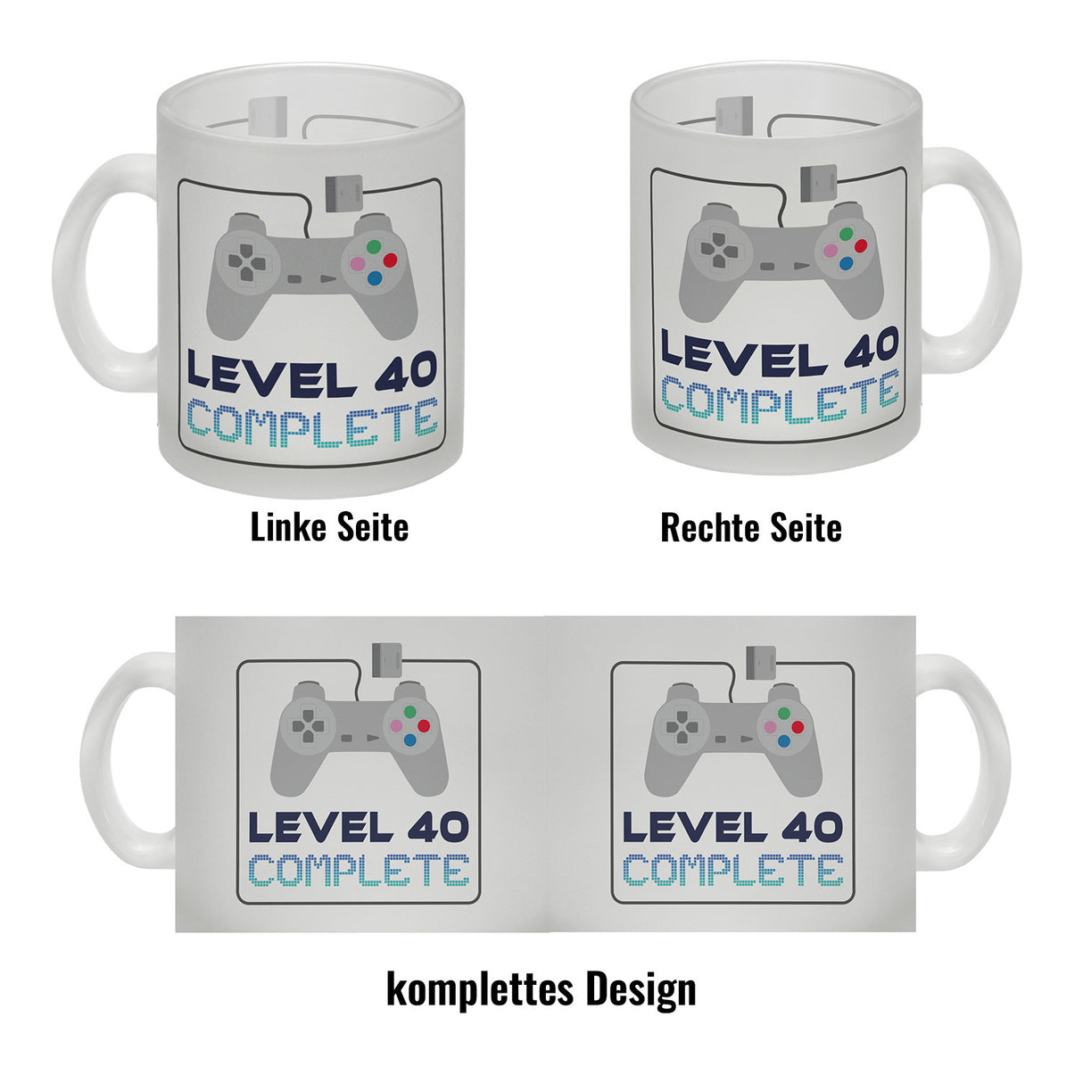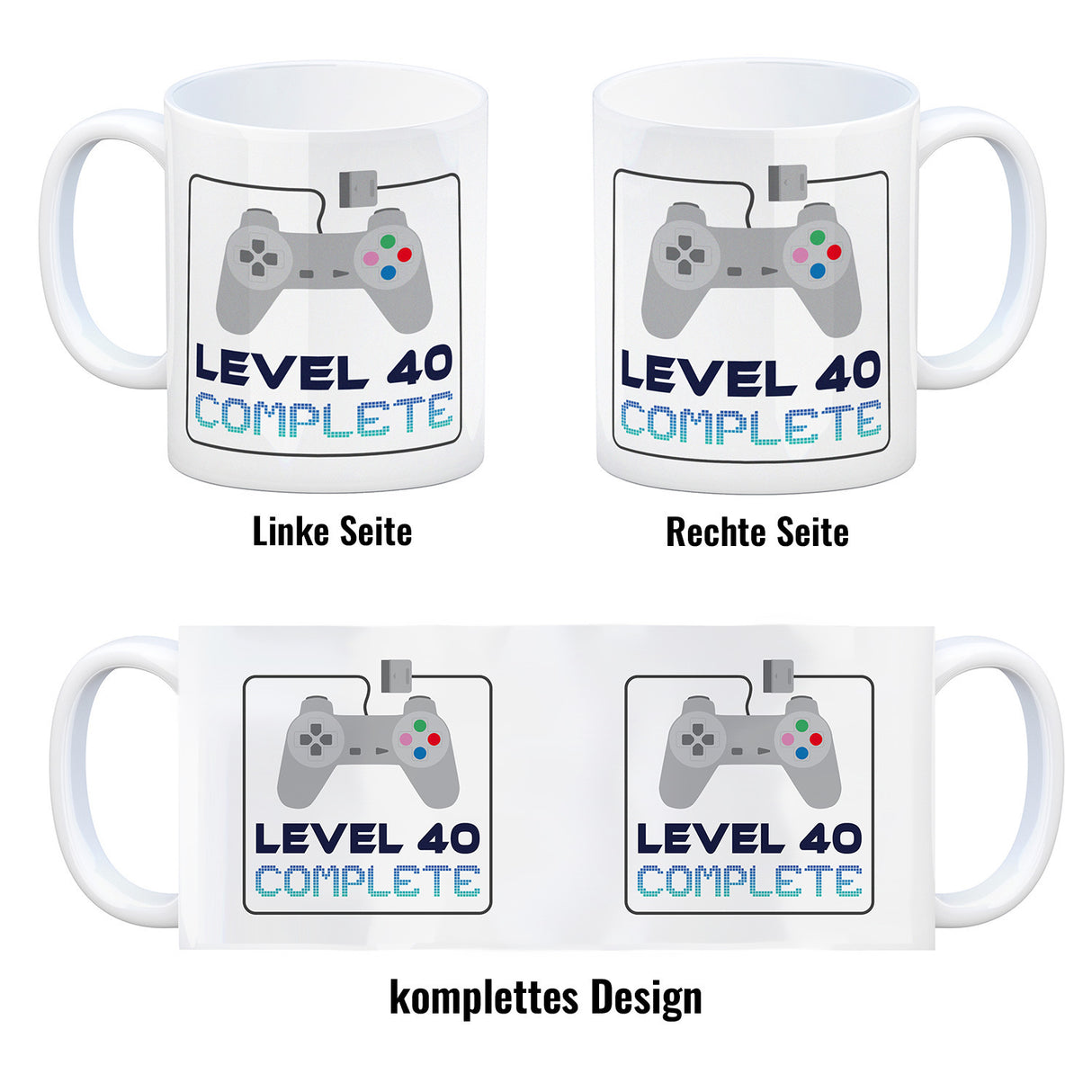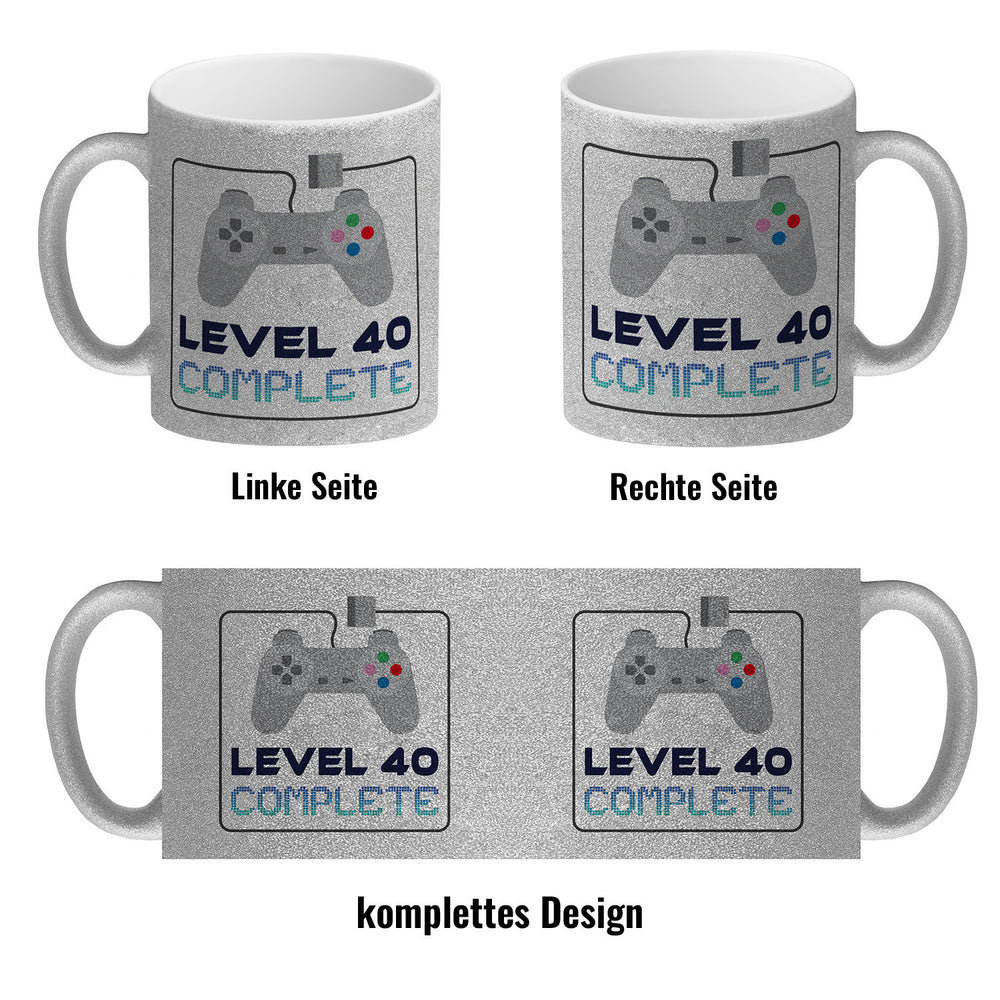 - 1x 40. Geburtstag Kaffeebecher mit lustigem Spruch: Level 40 in der gewählten Ausführung