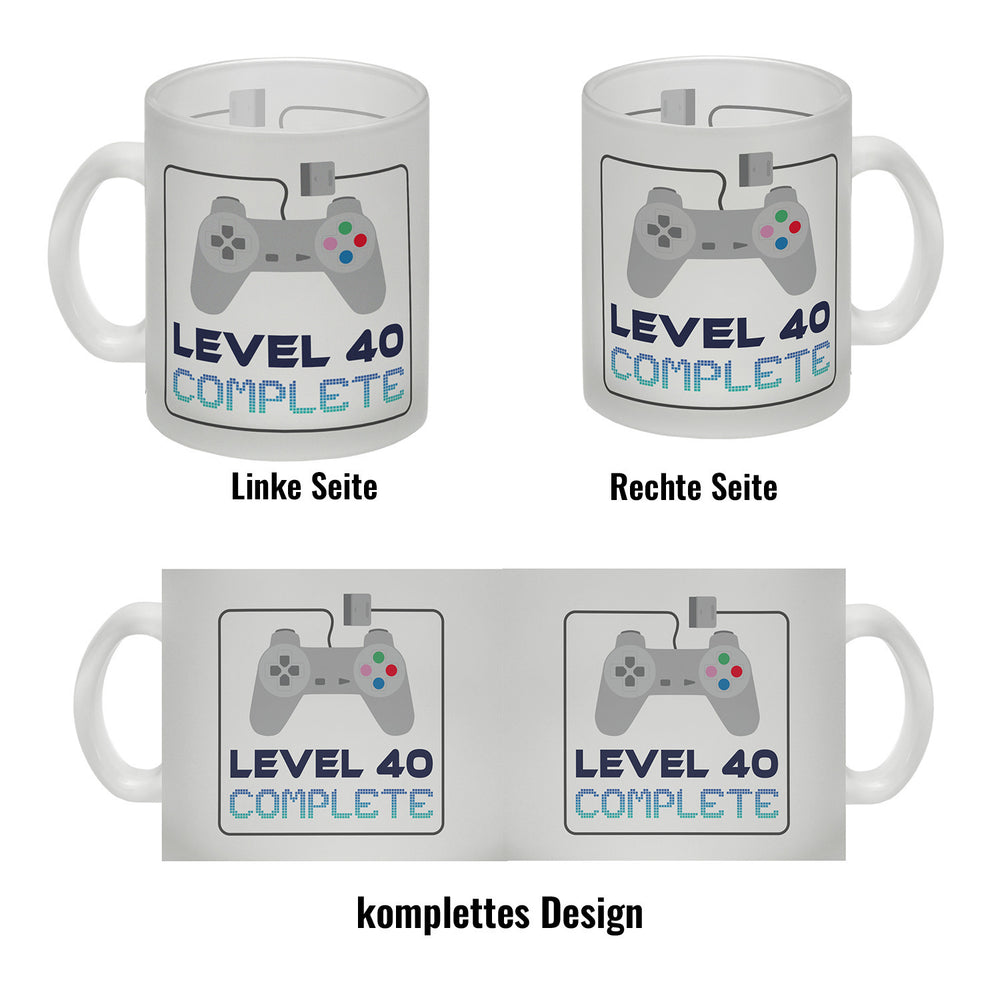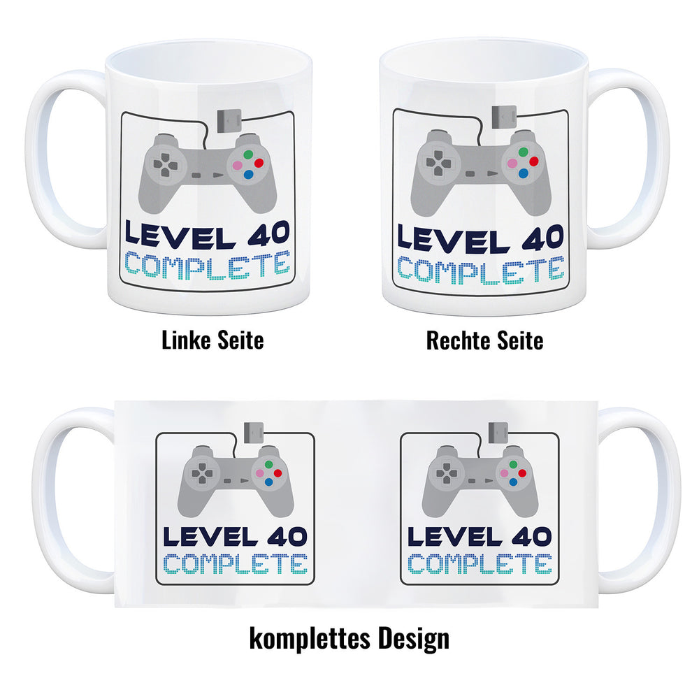 40. Geburtstag Kaffeebecher mit lustigem Spruch: Level 40