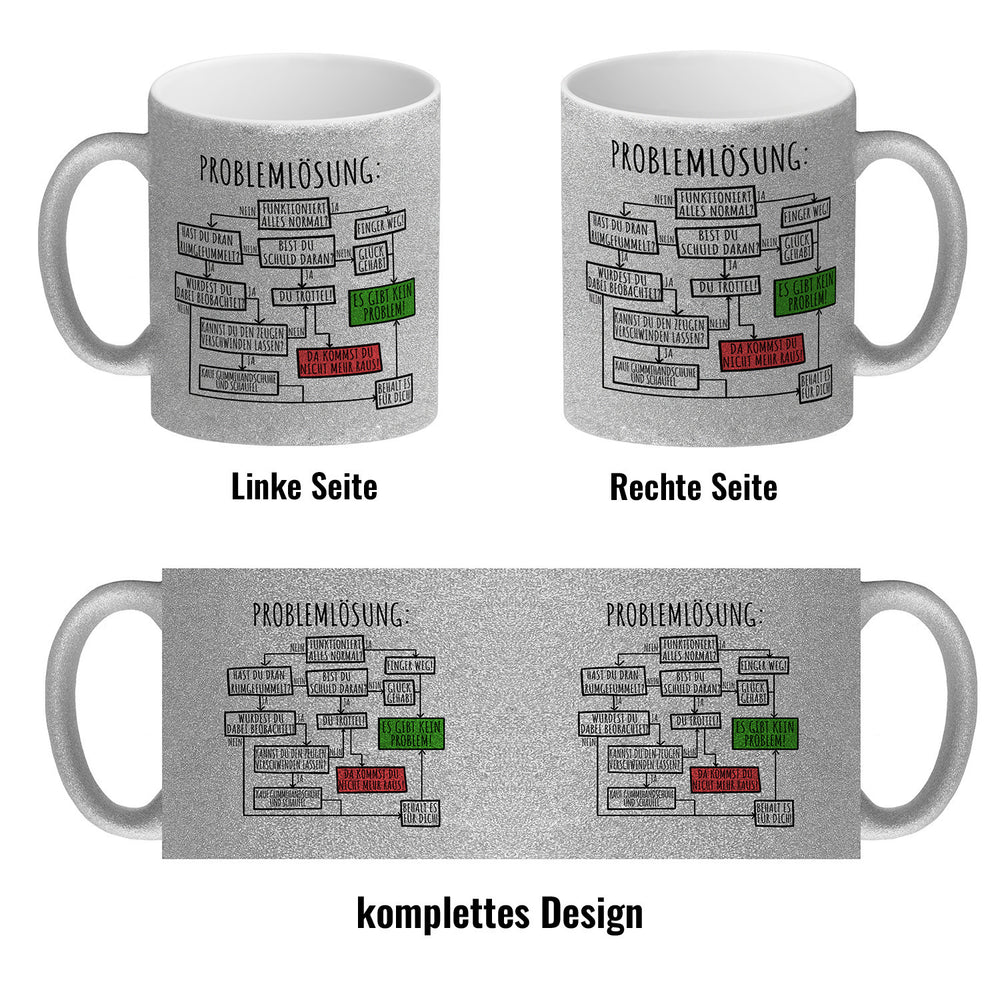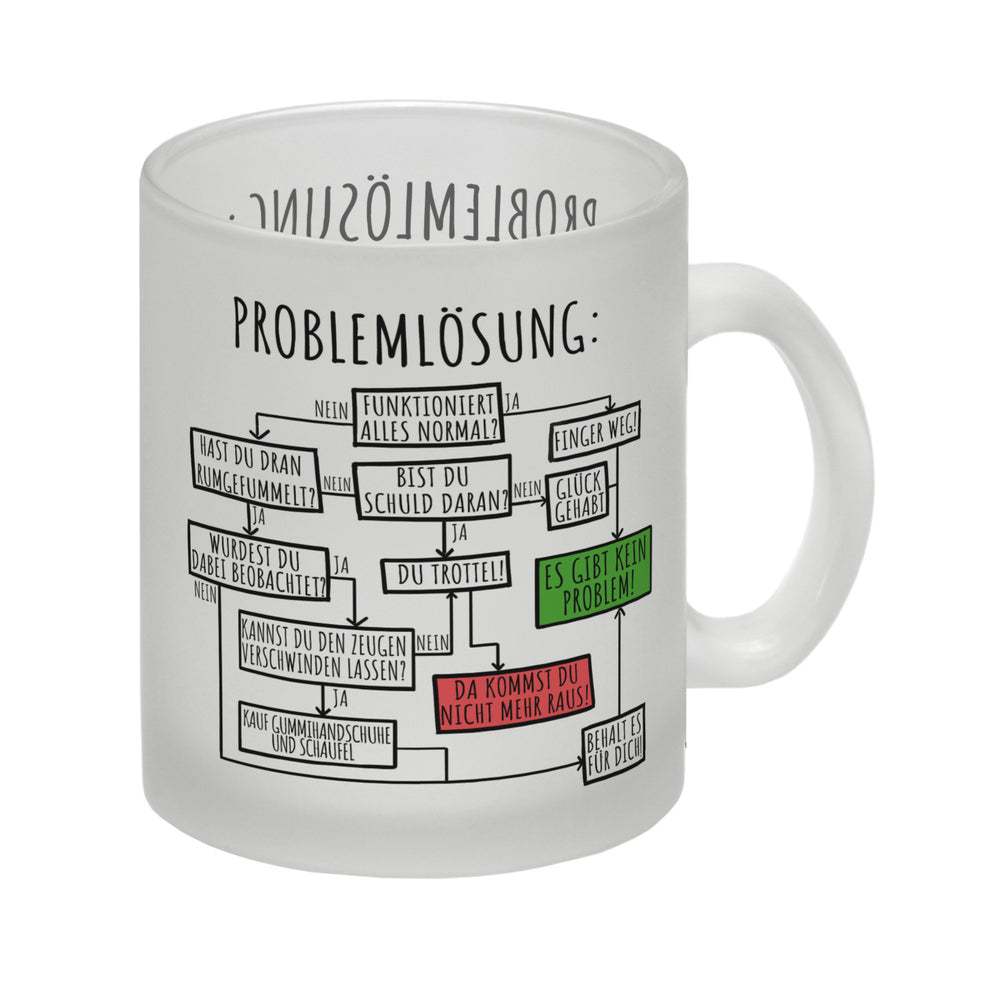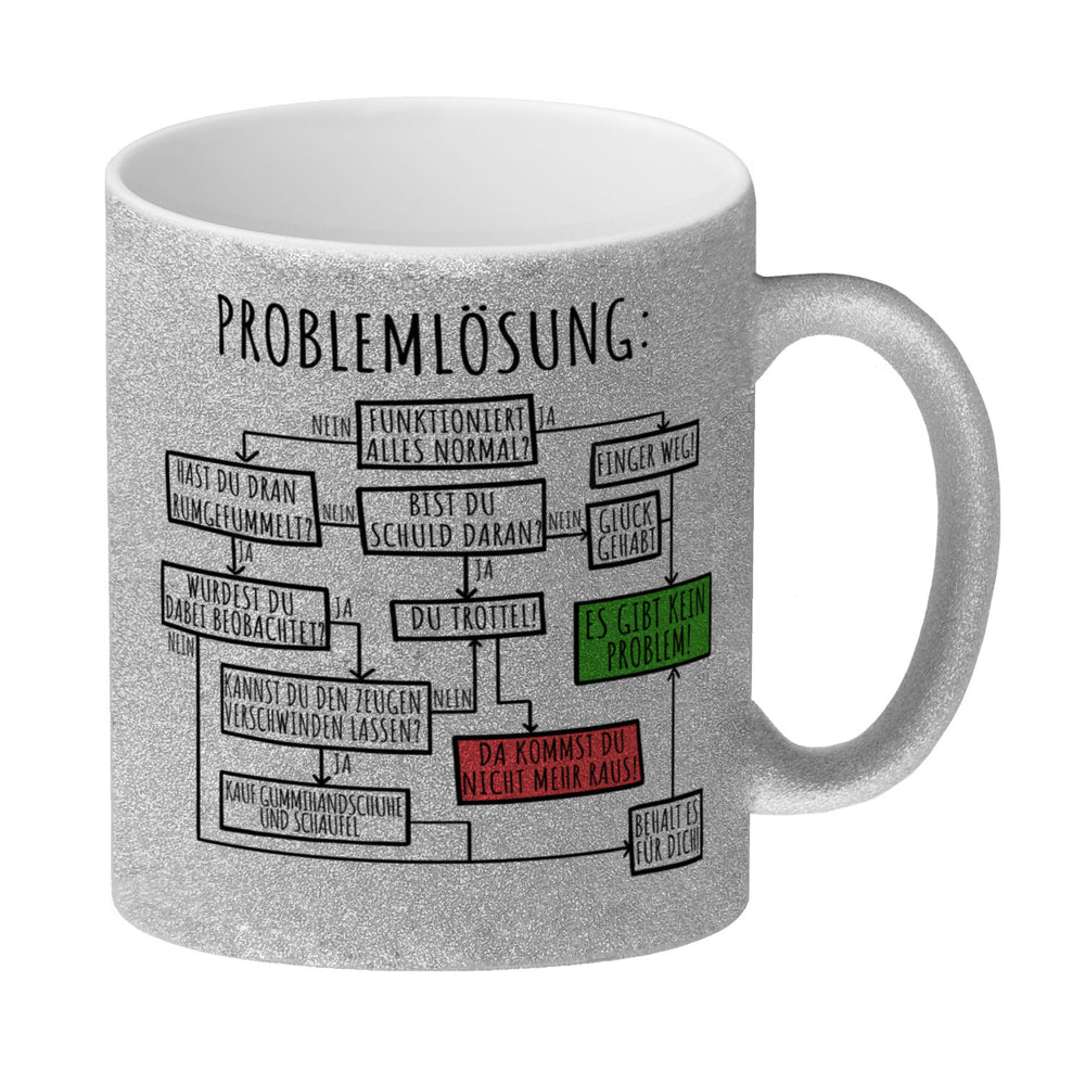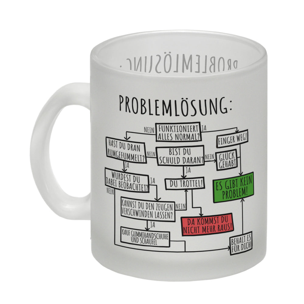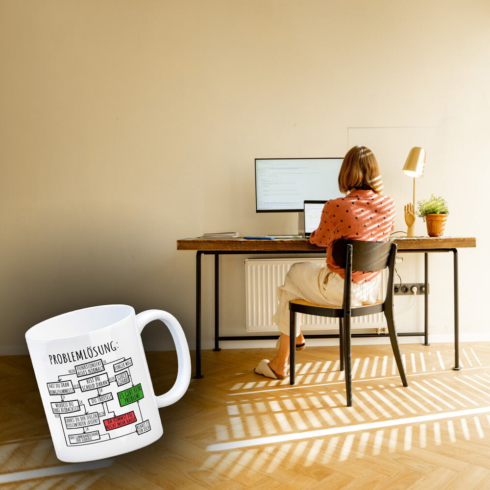 - Probleme treten auf der Arbeit immer wieder mal auf, es kommt nur auf den richtigen Umgang mit den Problemen an. Diese witzige Tasse gibt dir einen Leitfaden zur Problemlösung. Beantworte die Fragen, folge den Pfeilen und schau, wo du raus kommst. Gibt es kein Problem oder kommst du aus der Nummer nicht mehr raus?