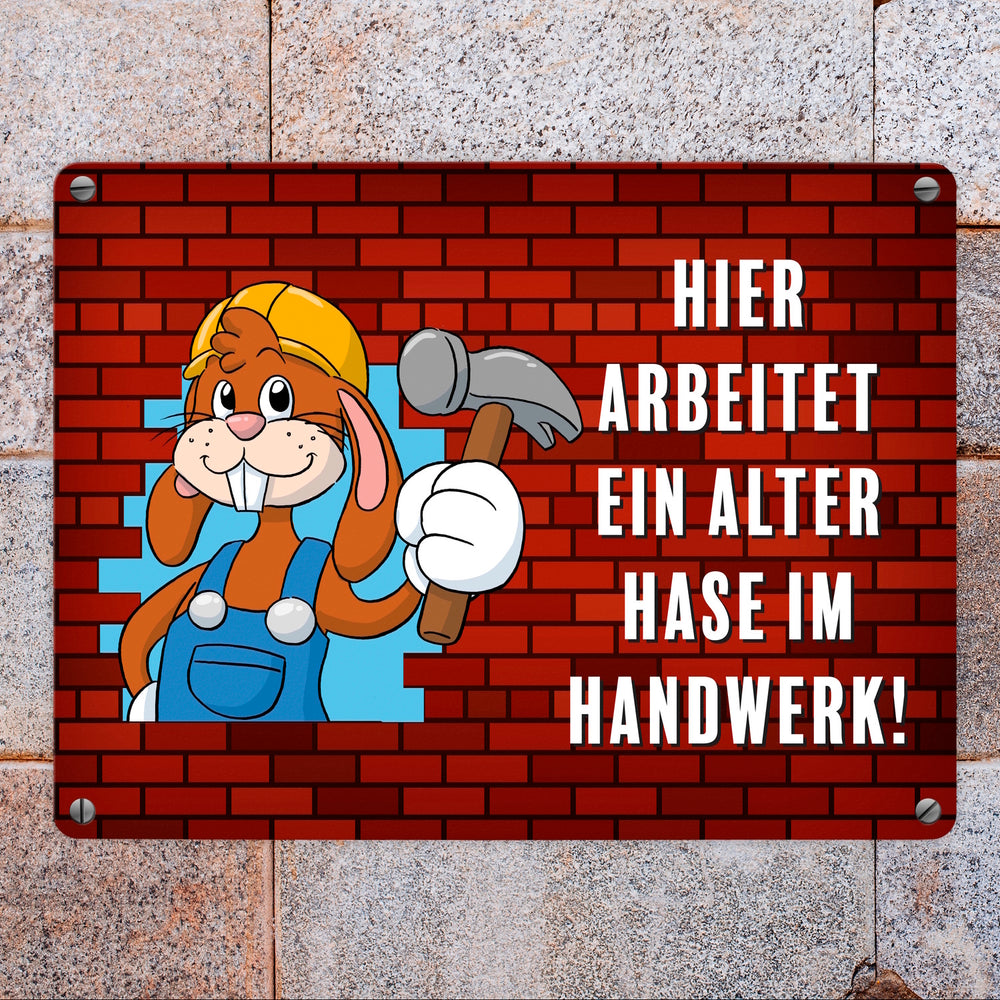Alter Hase im Handwerk Bauarbeiter Metallschild mit Spruch