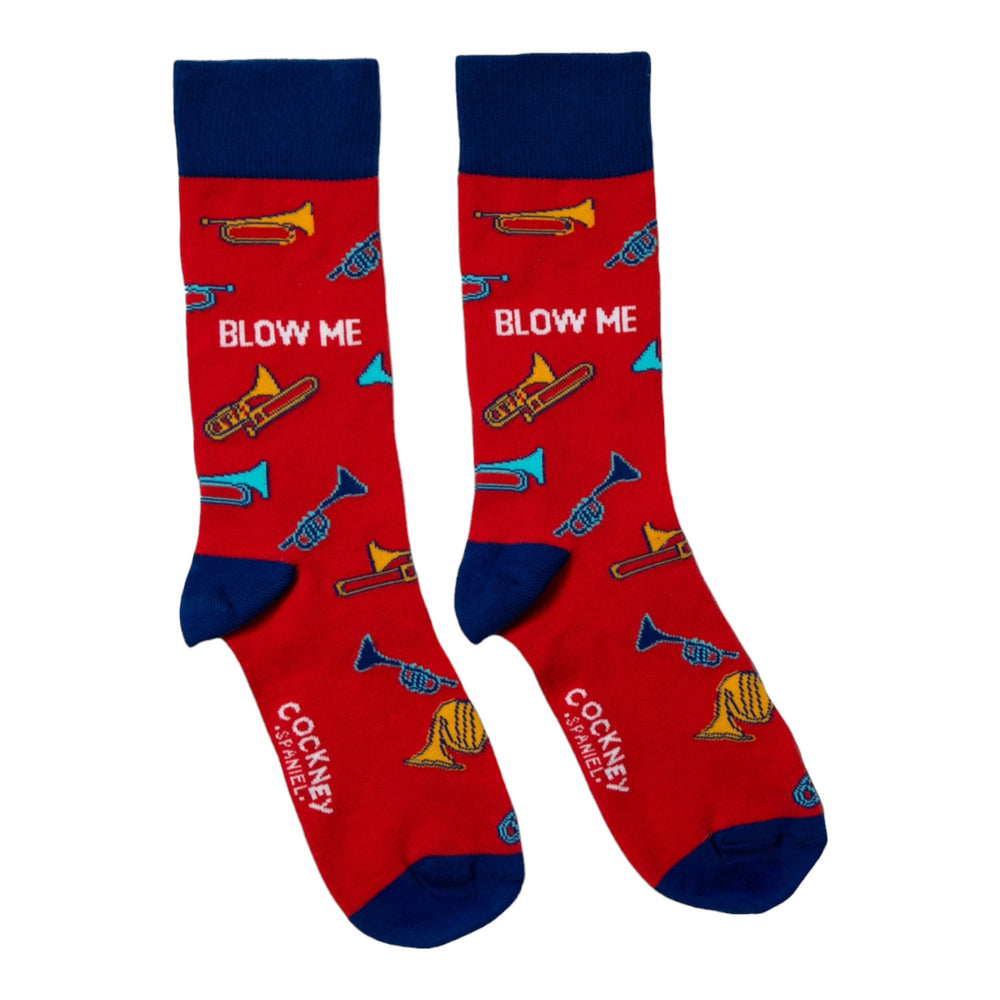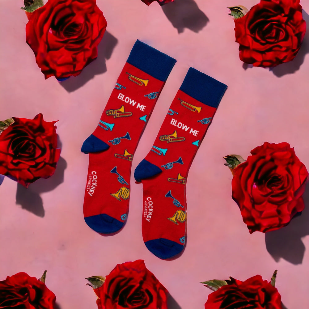 - Willst du überrascht schmunzeln oder jemandes Alltag aufblasen? Da kommen die "Blow me Socken" ins Spiel – schreiend komisch für den Mann, der Humor bis in die Zehenspitzen trägt! Die ideale Fußbekleidung für Musiker, Spaßvögel und Freunde zweideutiger Wortspiele!