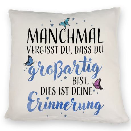 - Das romantische Kissen besticht durch sein zauberhaftes Design mit bunten Schmetterlingen und kleinen Sternen. Es ist nicht nur ein kuscheliger Begleiter auf dem Sofa, sondern auch ein echter Hingucker als Dekokissen. Es erinnert uns daran, dass wir alle etwas Großartiges sind und das manchmal vergessen.
