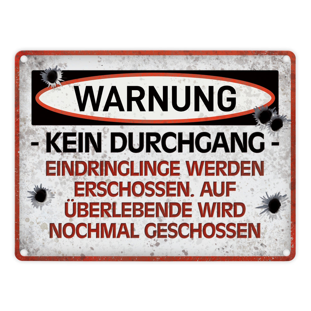 - 1x Eindringlinge werden erschossen Warnschild mit Einschusslöcher Motiv in der gewählten Größe