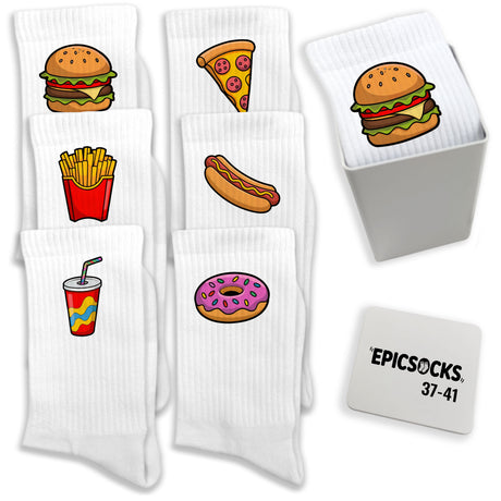 epicsocks Fast Food Fun Socken in 37-41 im 6er Set in Geschenkdose im 6er Set in Geschenkbox