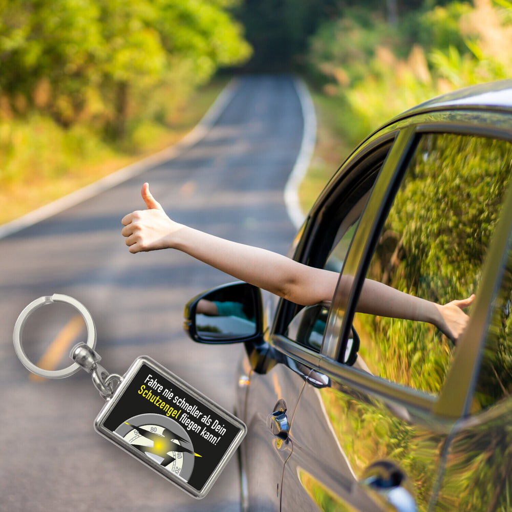 - 1x Fahre nie schneller, als dein Schutzengel fliegen kann Schlüsselanhänger in der gewählten Ausführung