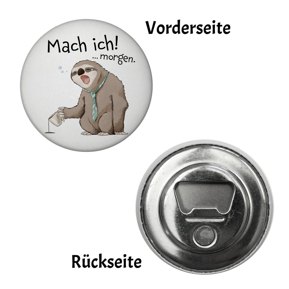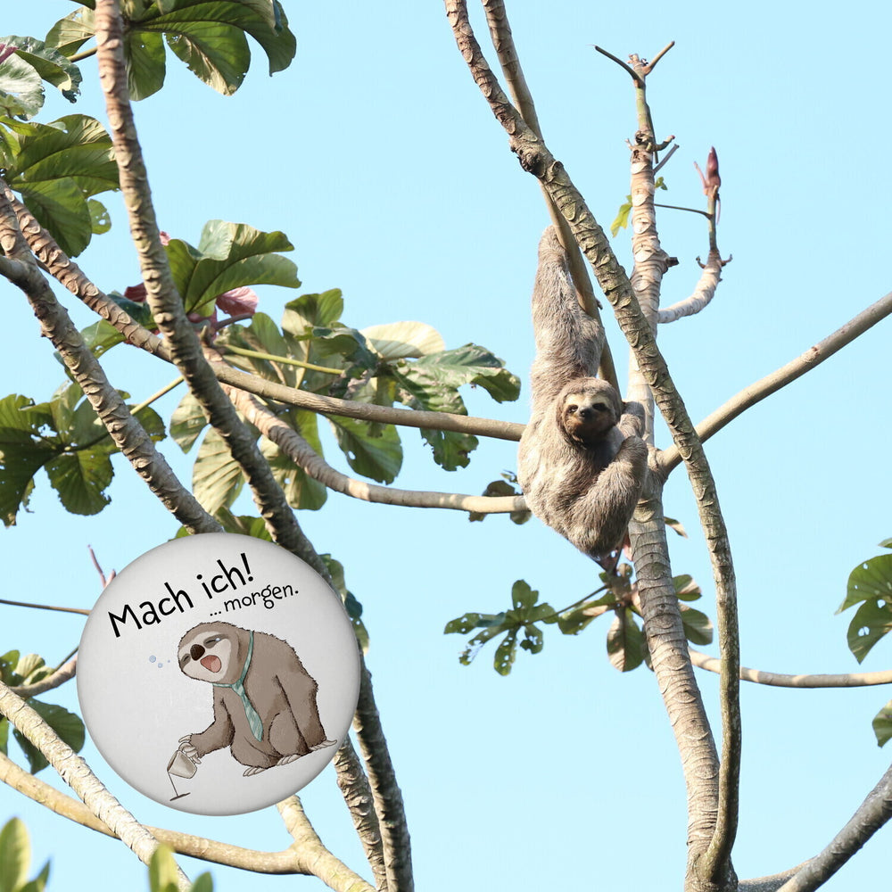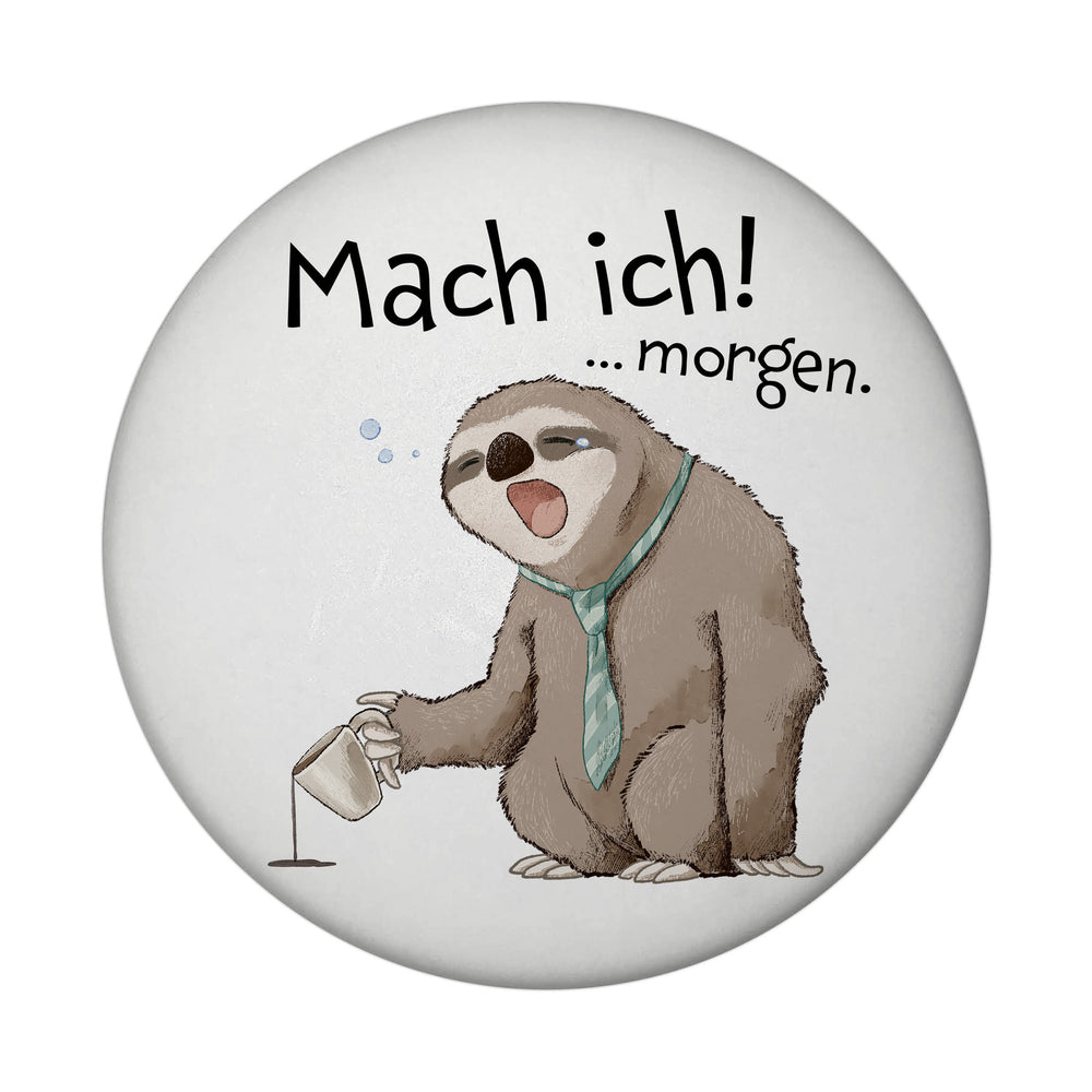 • 1x Faultier Magnet rund rund mit Spruch Mach ich morgen in der gewählten Ausführung