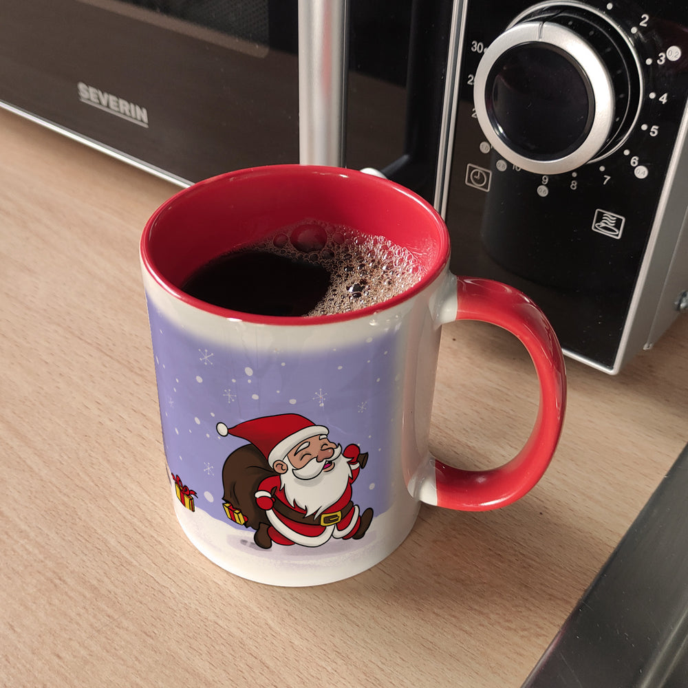 - 1x Frohe Weihnachten! Kaffeebecher mit lustigem Comic-Weihnachtsmann in der gewählten Ausführung