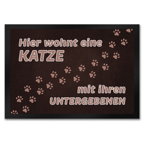 Hier wohnt eine Katze mit ihren Untergebenen Fußmatte mit Pfotenabdrücken