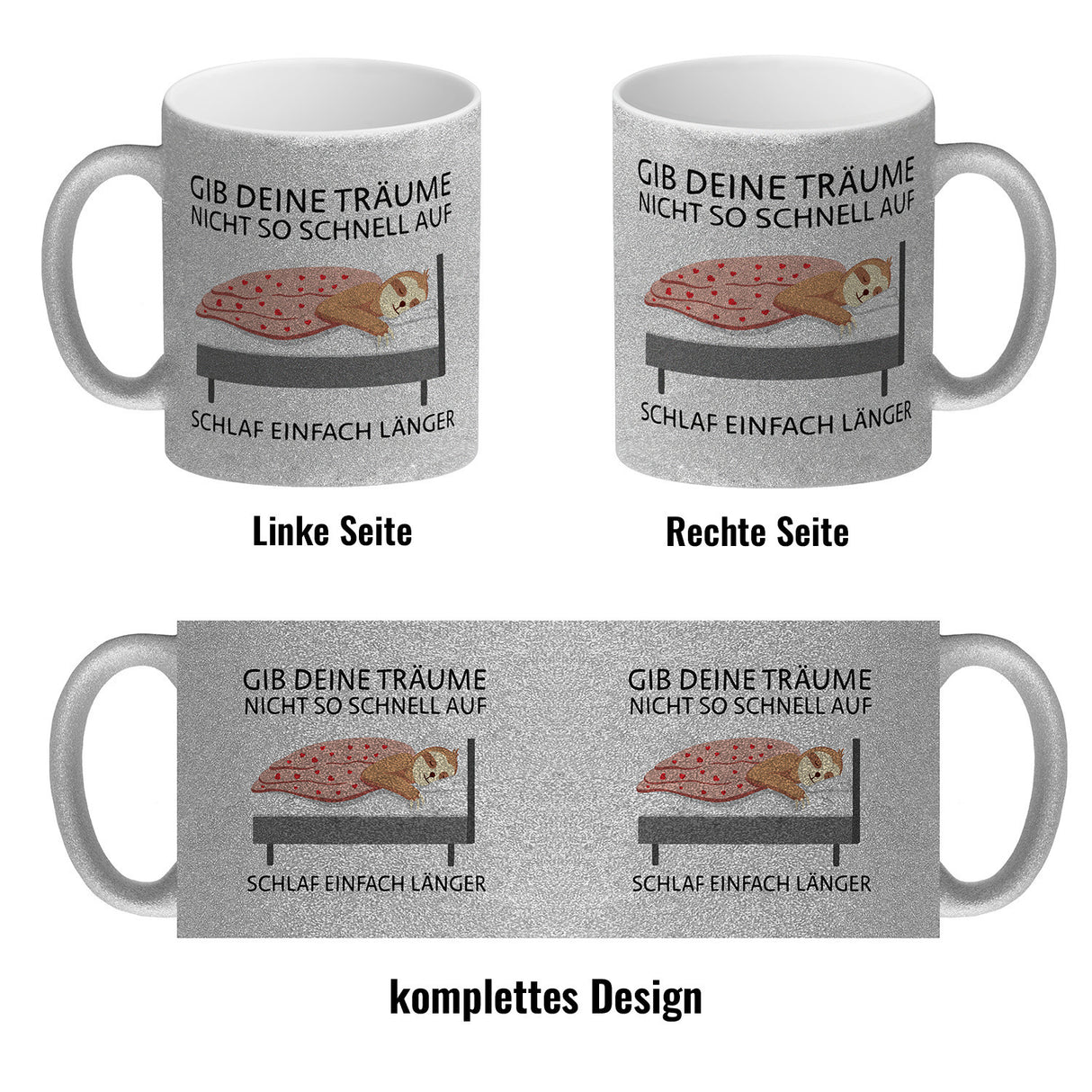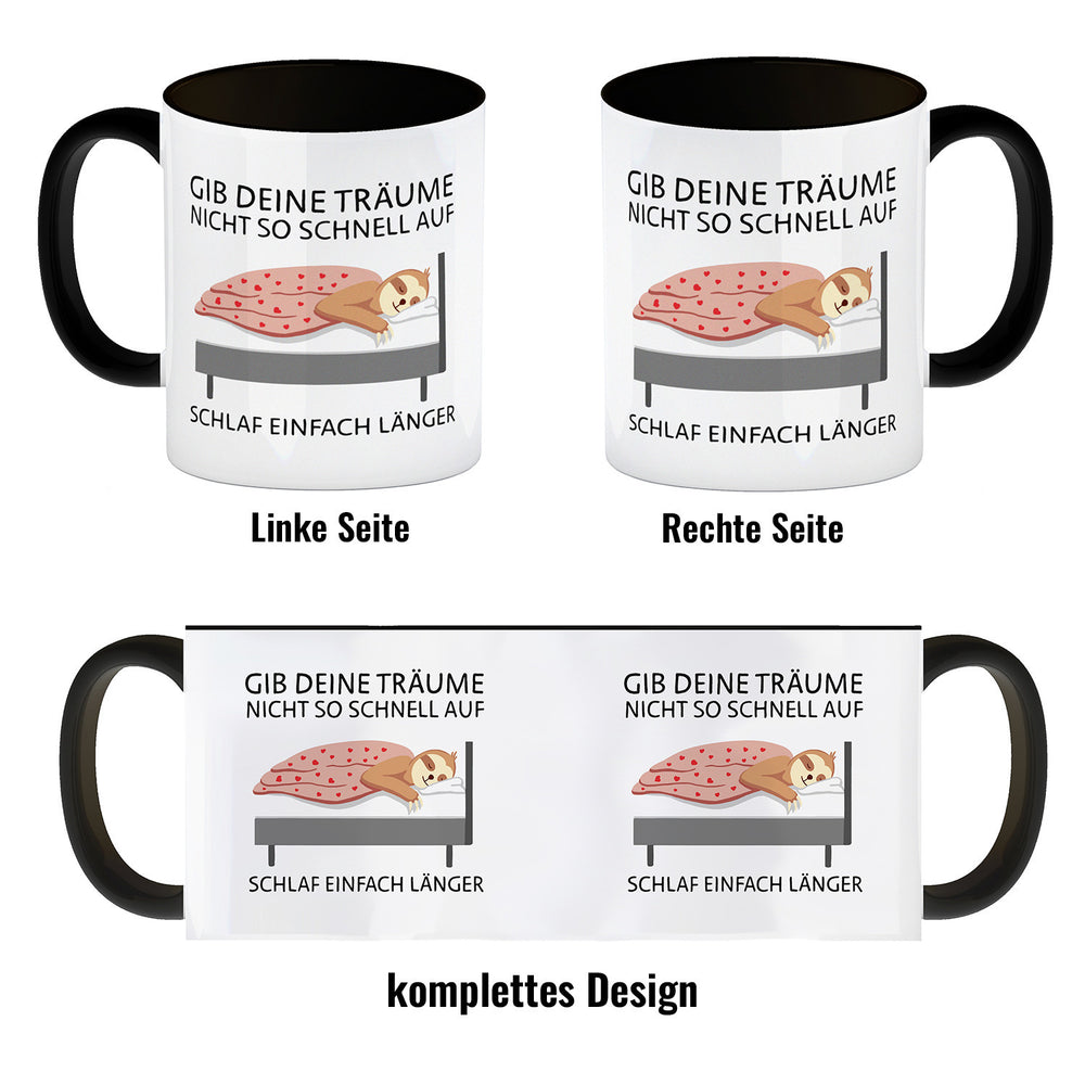 • 1x Gib deine Träume nicht so schnell auf… Faultier Kaffeebecher in der gewählten Ausführung