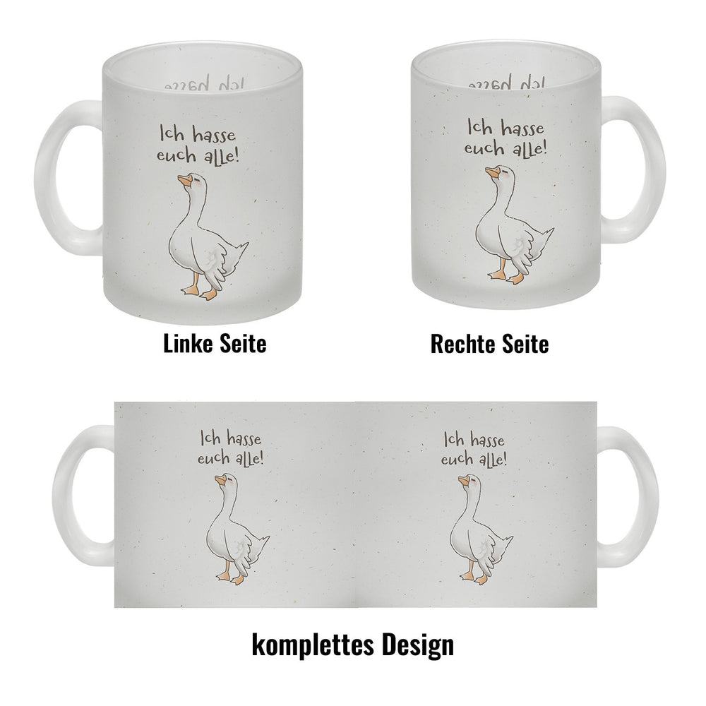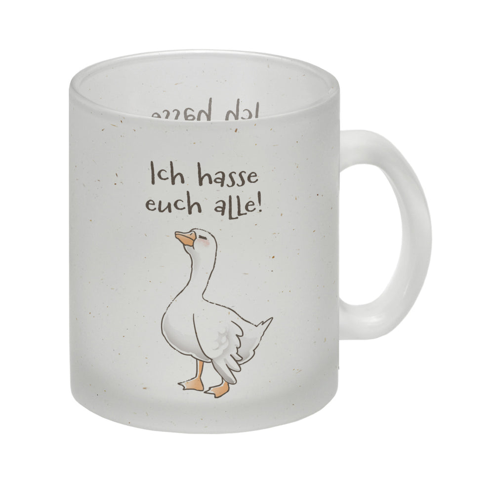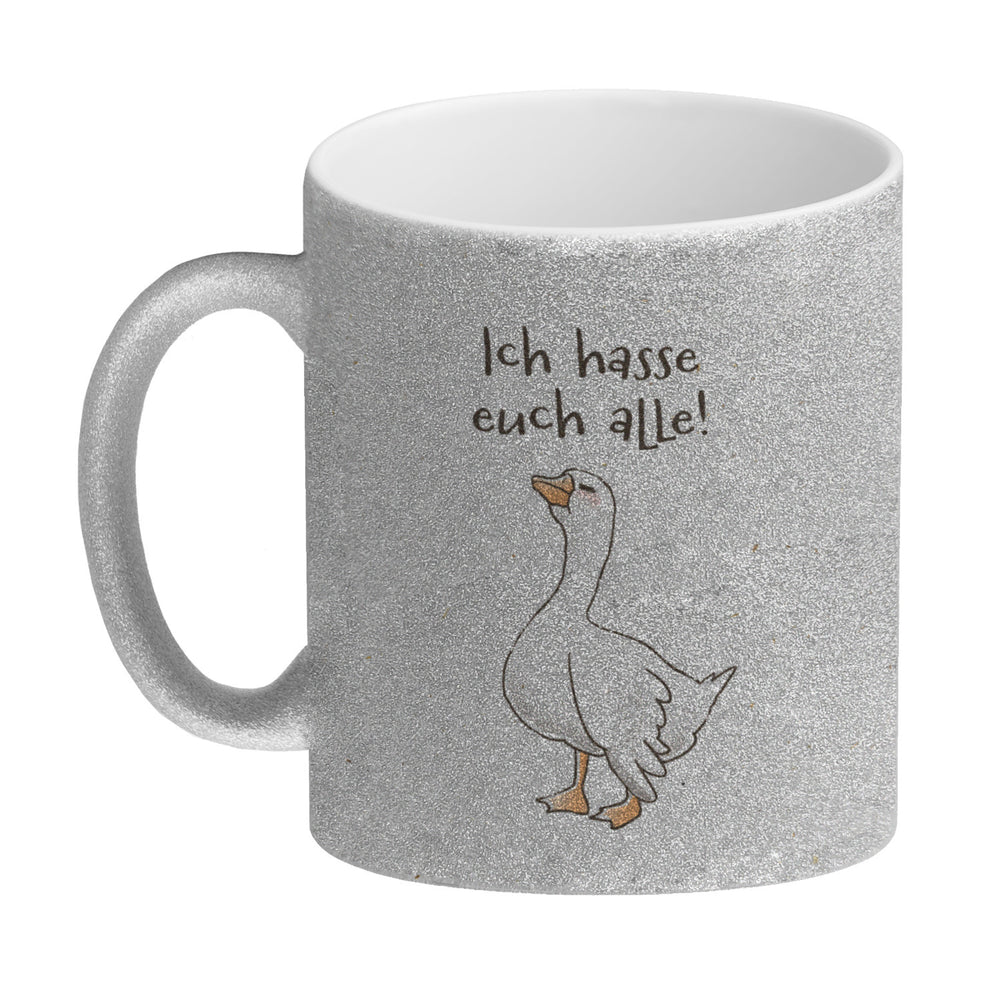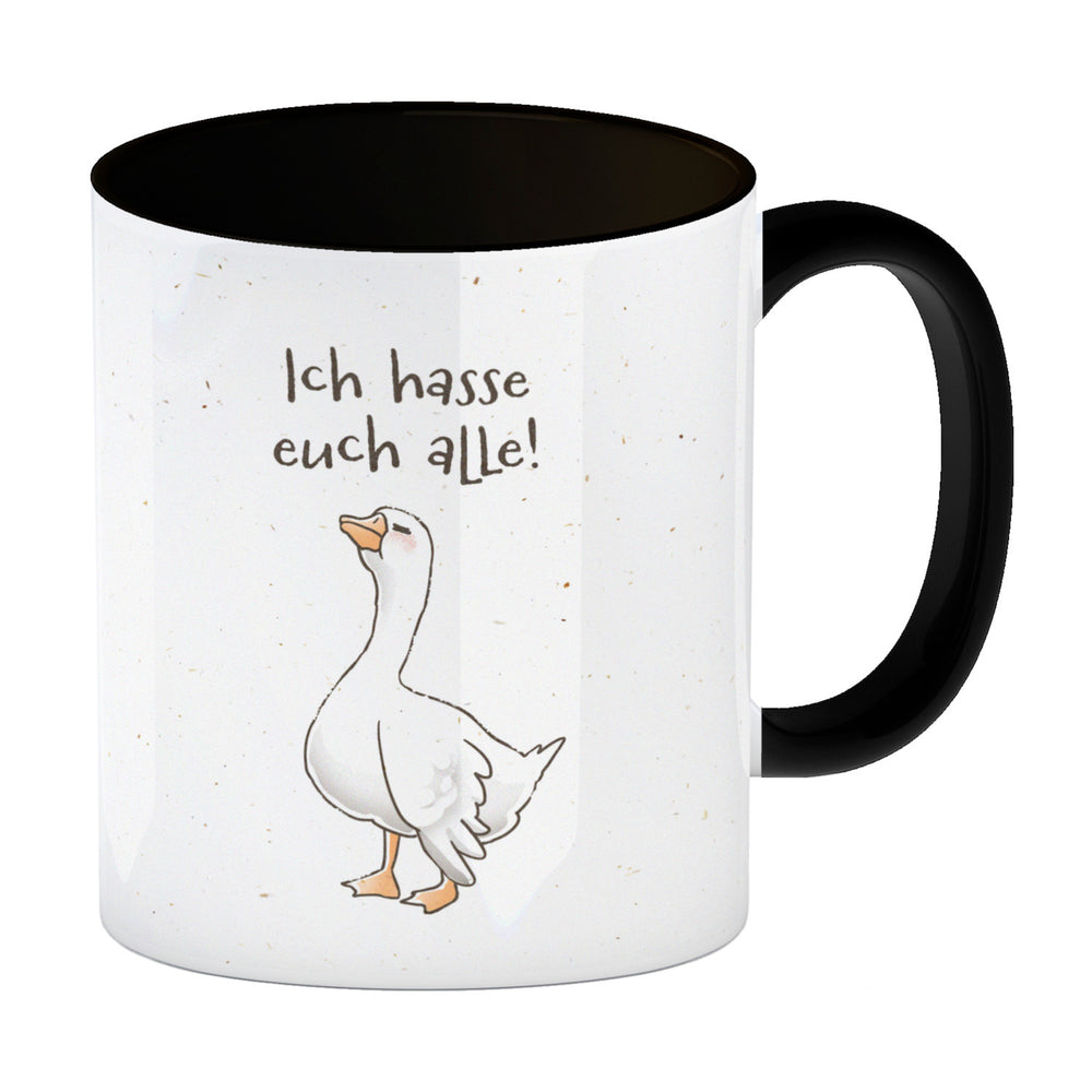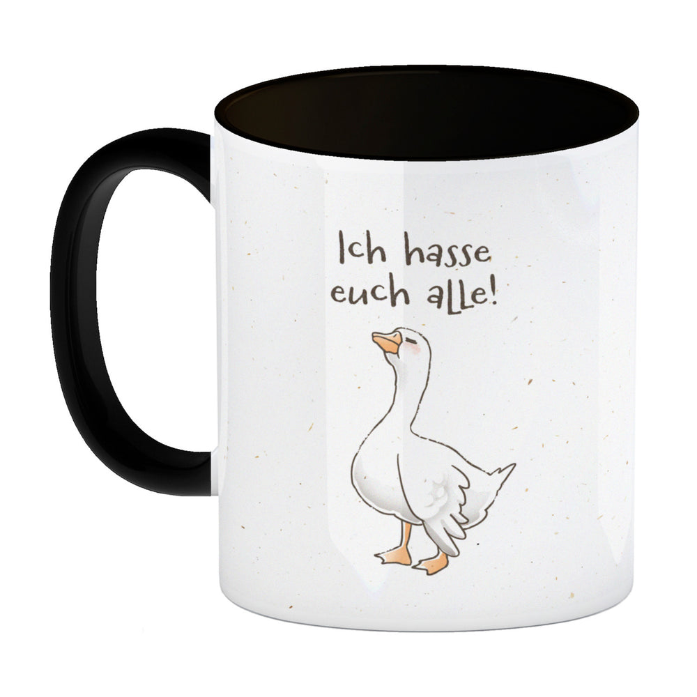 - 1x Gilbert die Gans Kaffeebecher mit Spruch Ich hasse euch alle in der gewählten Ausführung