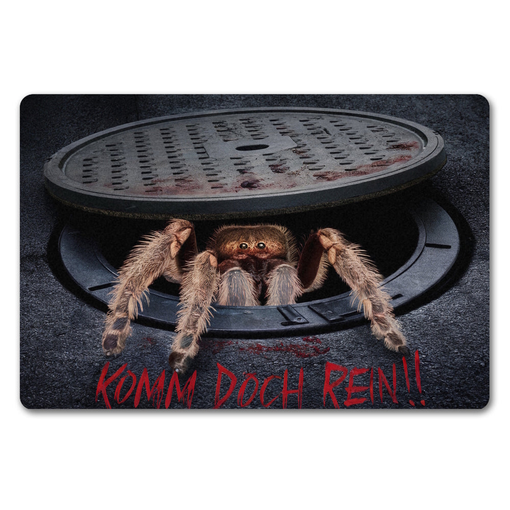 Haarige Tarantel unter Kanaldeckel Fußmatte in 35x50 cm ohne Rand - Komm doch rein - 50x35 cm ist auf Lager und wird versandt, sobald es wieder verfügbar ist