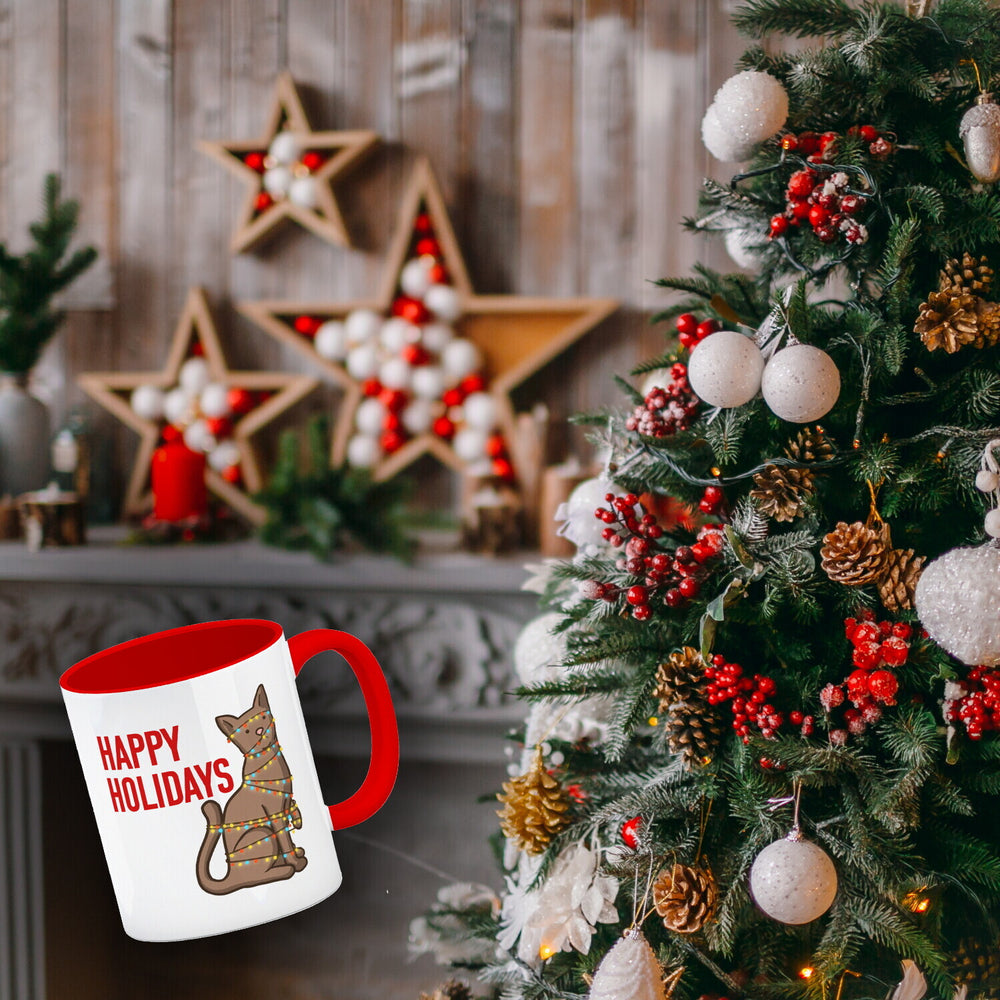 Happy Holidays Weihnachtskatze Kaffeebecher
