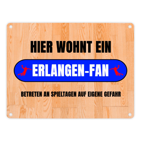 Hier wohnt ein Erlangen-Fan Metallschild in 15x20 cm mit Turnhallenboden Motiv