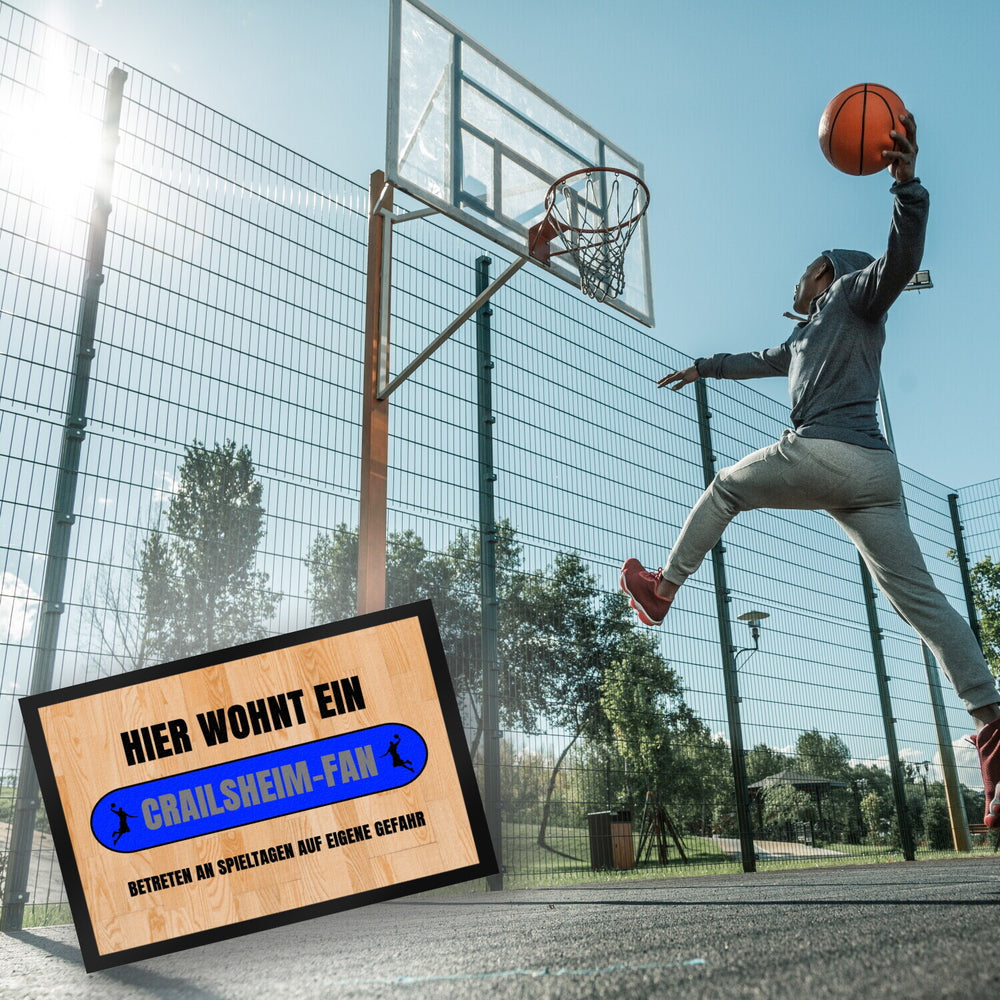 - 1x Hier wohnt ein Crailsheim-Fan Fußmatte in 35x50 cm mit Turnhallenboden Motiv in der gewählten Größe