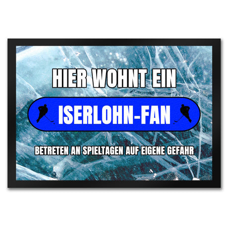 Hier wohnt ein Iserlohn-Fan Fußmatte in 35x50 cm mit Eishallen Boden-Motiv