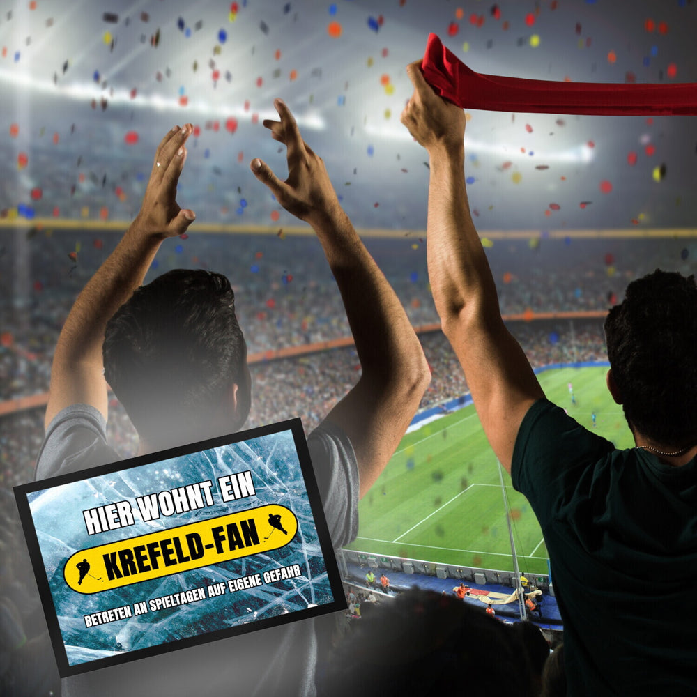 - 1x Hier wohnt ein Krefeld-Fan Fußmatte in 35x50 cm mit Eishallen Boden-Motiv in der gewählten Größe