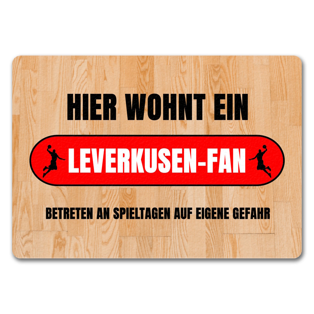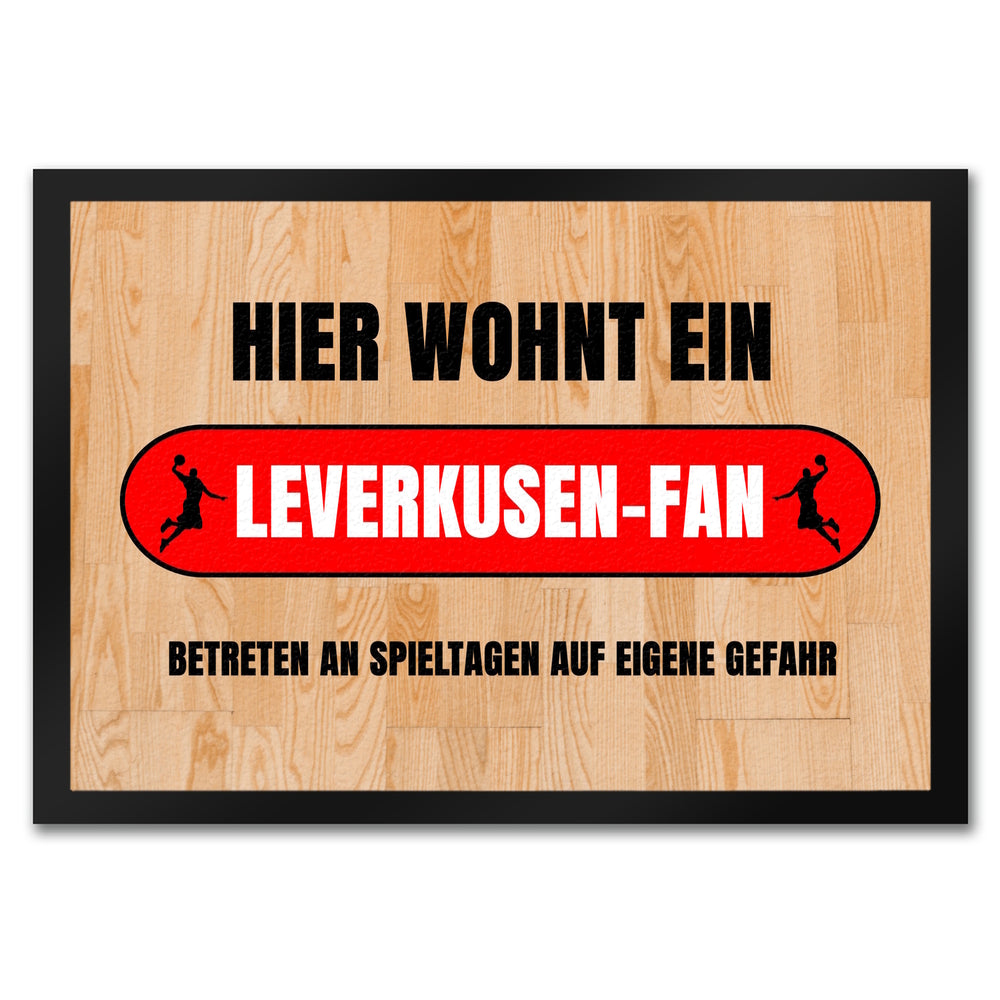 Hier wohnt ein Leverkusen-Fan Fußmatte in 35x50 cm mit Turnhallenboden Motiv