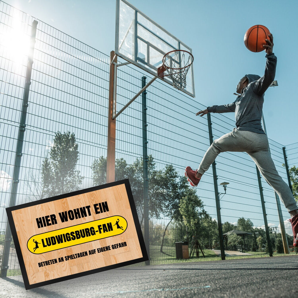 - 1x Hier wohnt ein Ludwigsburg-Fan Fußmatte in 35x50 cm mit Turnhallenboden Motiv in der gewählten Größe