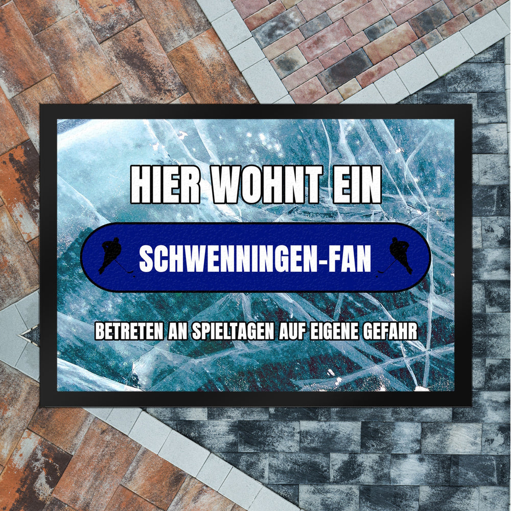 Hier wohnt ein Schwenningen-Fan Fußmatte in 35x50 cm mit Eishallen Boden-Motiv