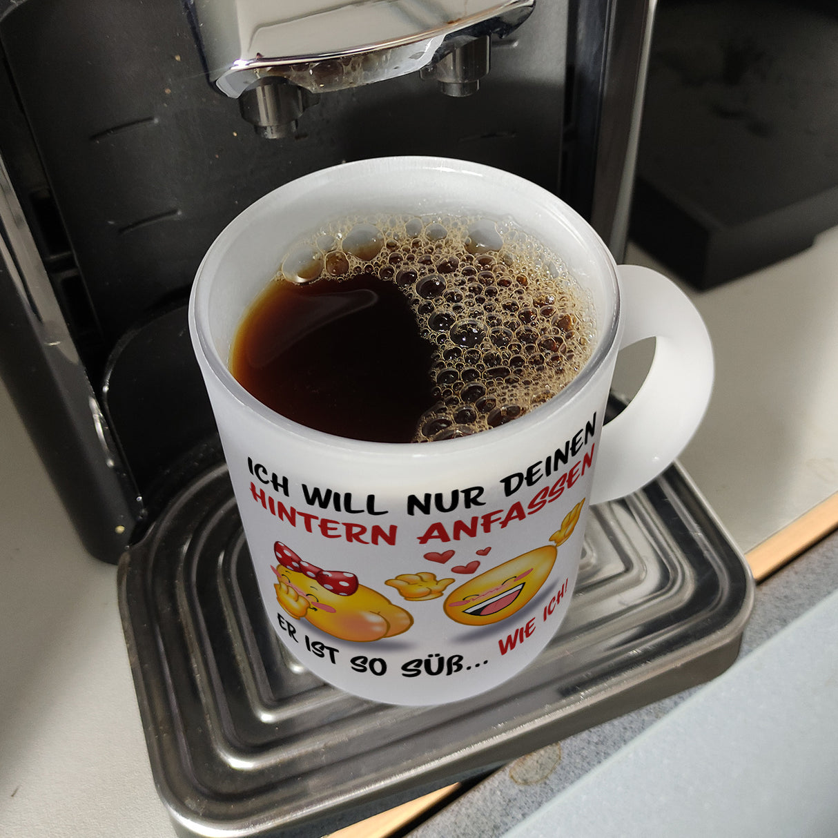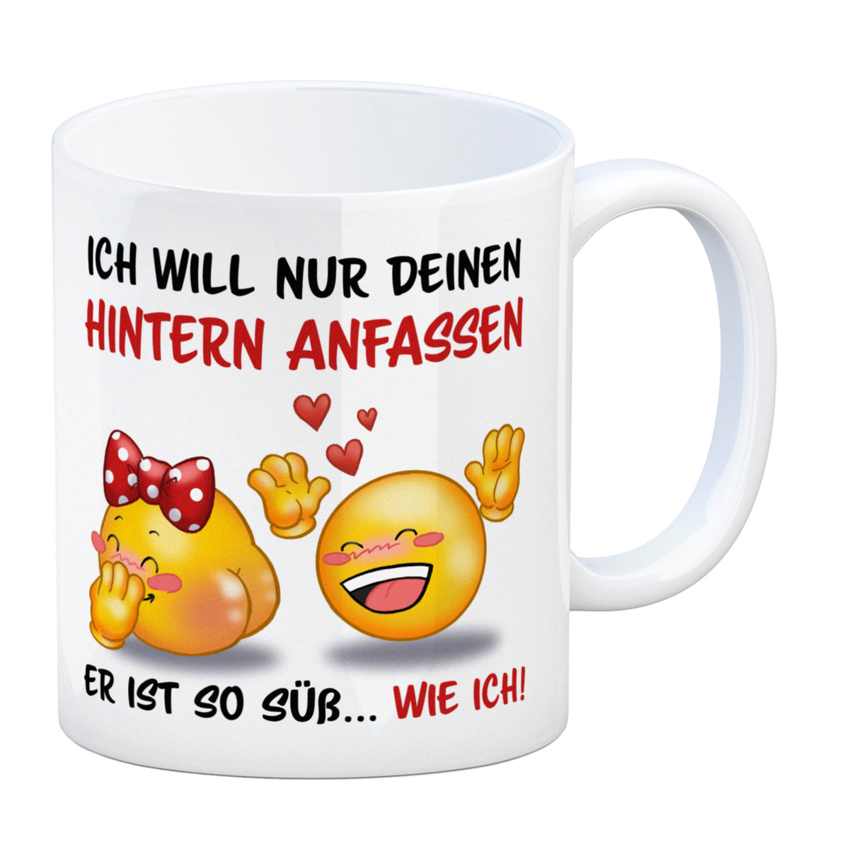 Hintern anfassen Kaffeebecher mit Emoticons und Spruch